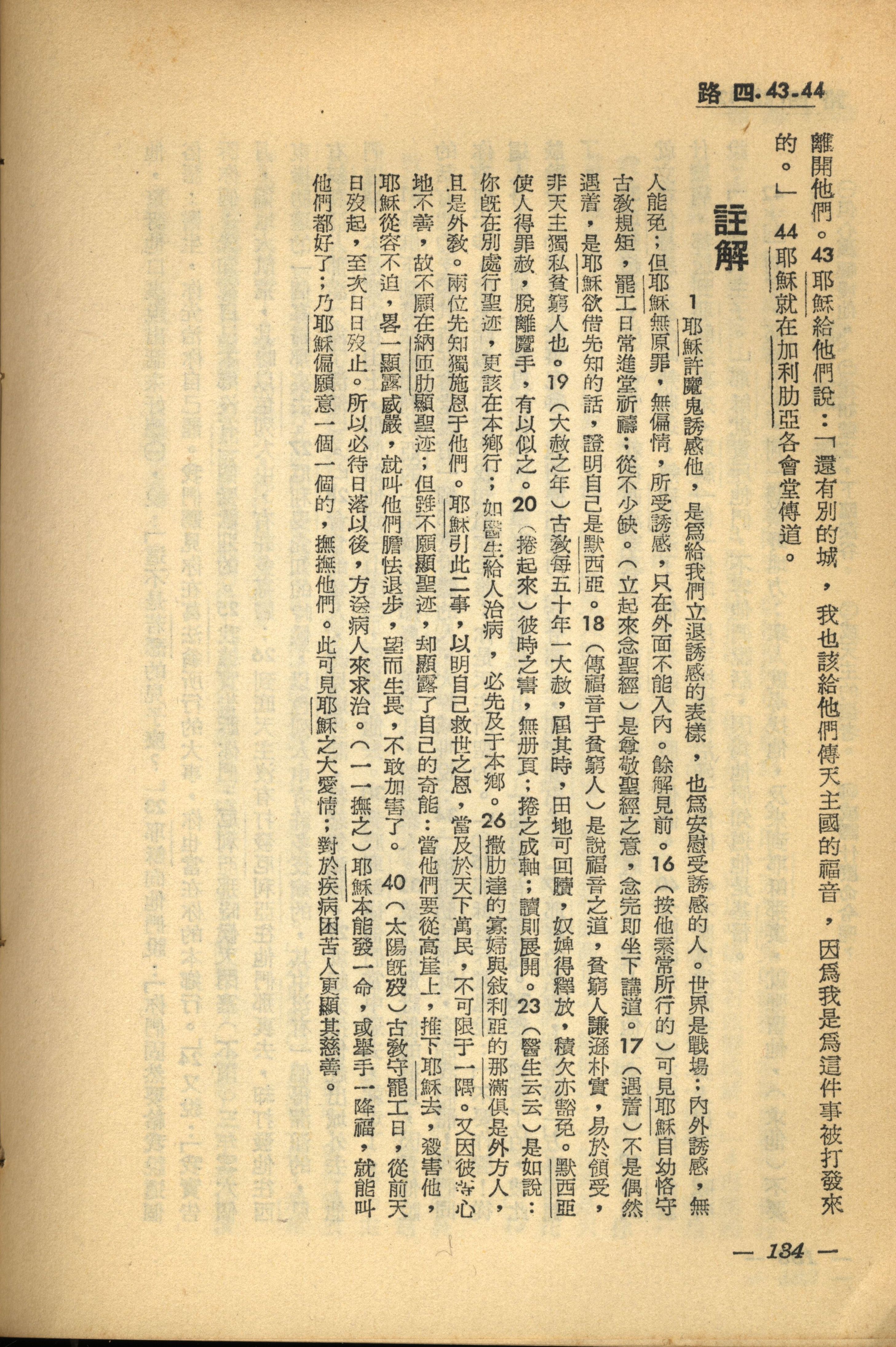 1956年新經全集 路加福音 4 章 43 節到 4 章 44 節