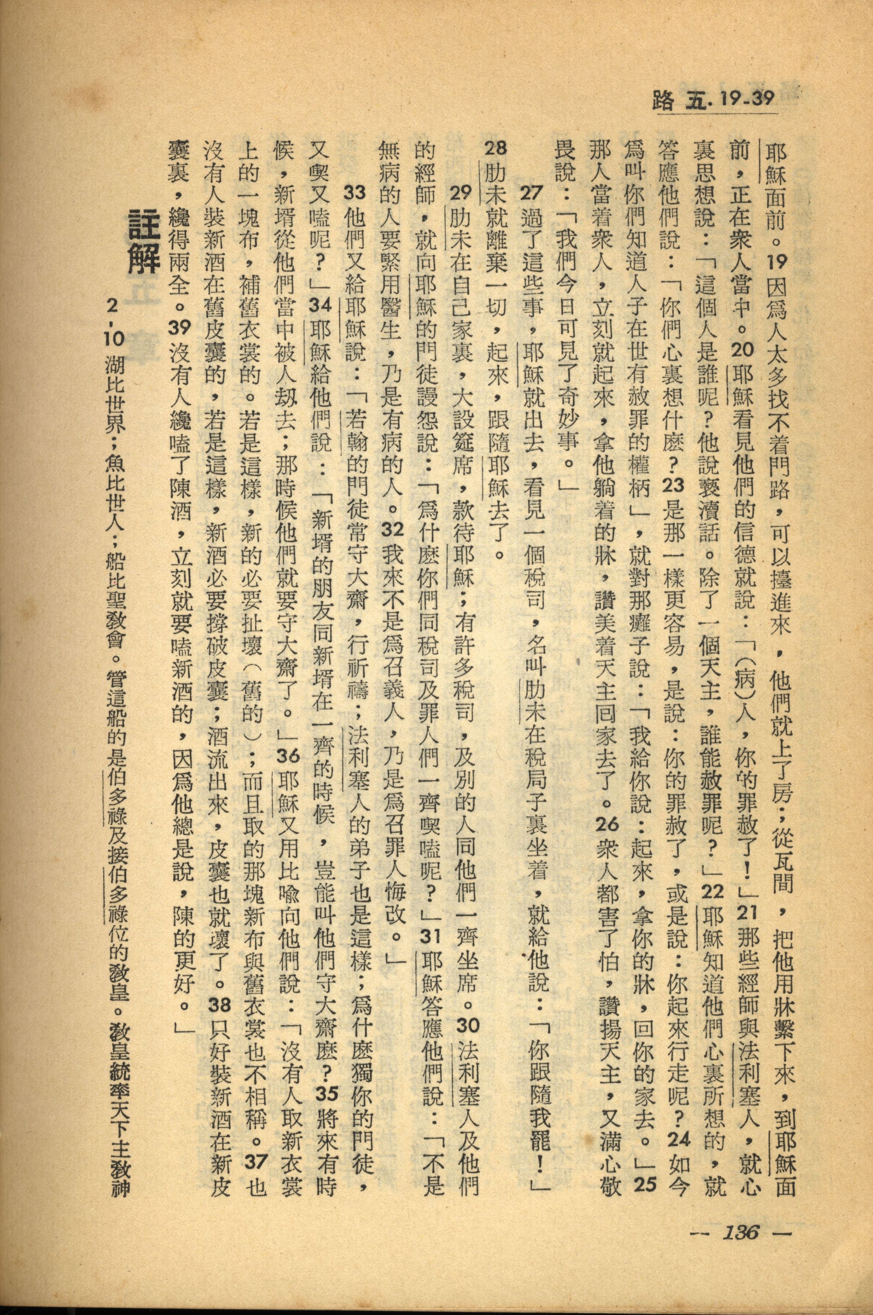 1956年新經全集 路加福音 5 章 19 節到 5 章 39 節