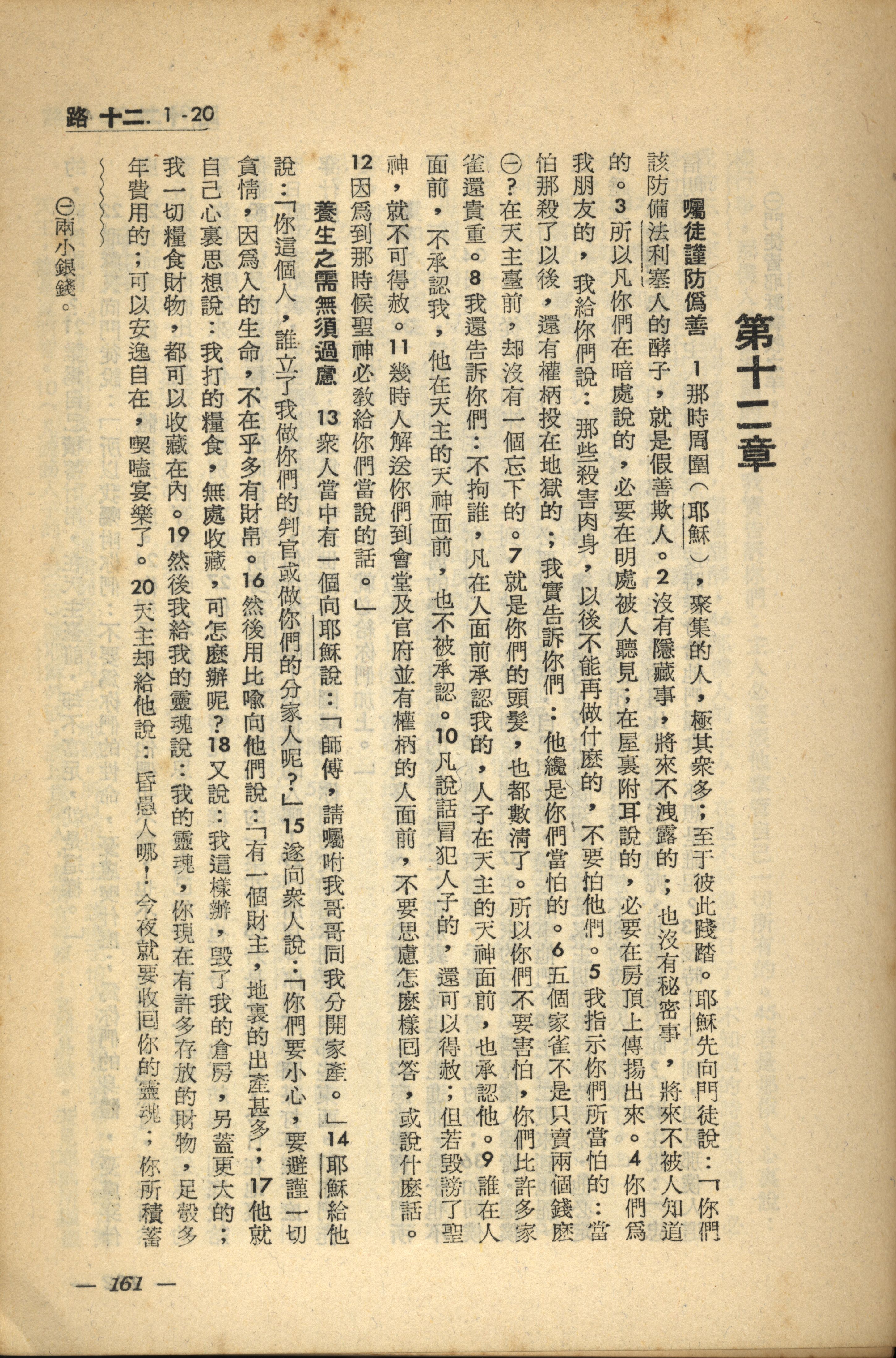 1956年新經全集 路加福音 12 章 1 節到 12 章 20 節