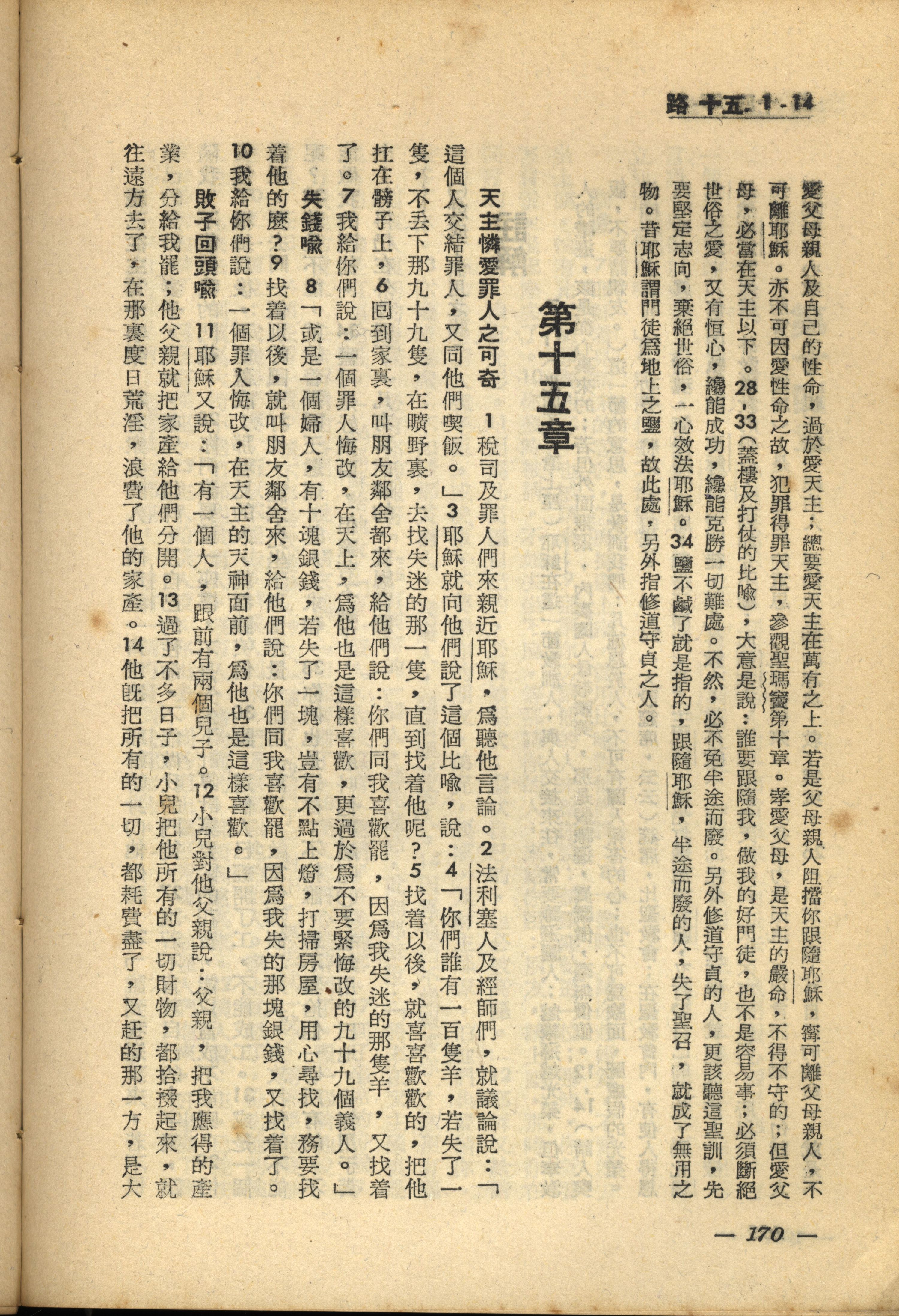 1956年新經全集 路加福音 15 章 1 節到 15 章 14 節