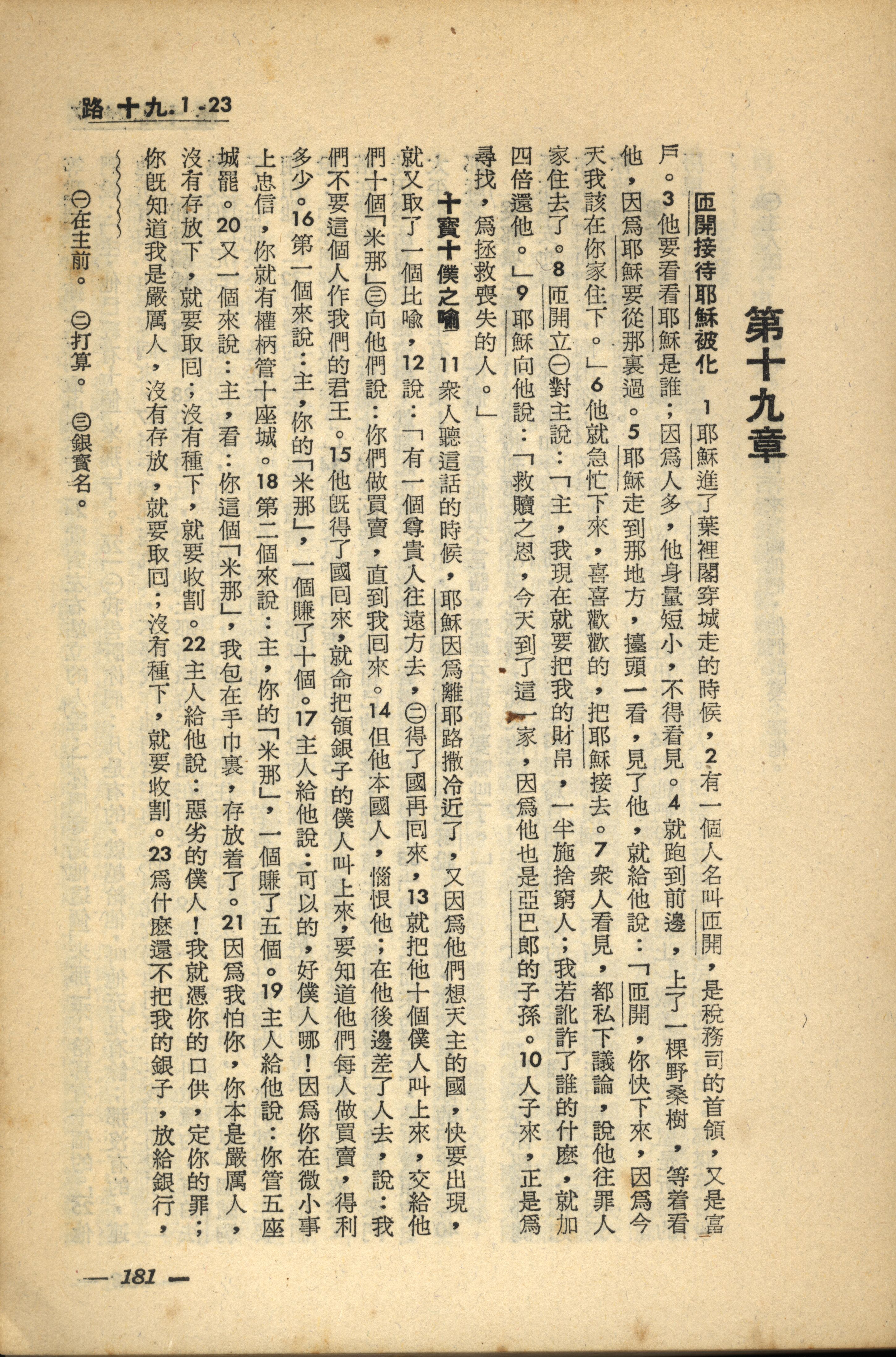 1956年新經全集 路加福音 19 章 1 節到 19 章 23 節