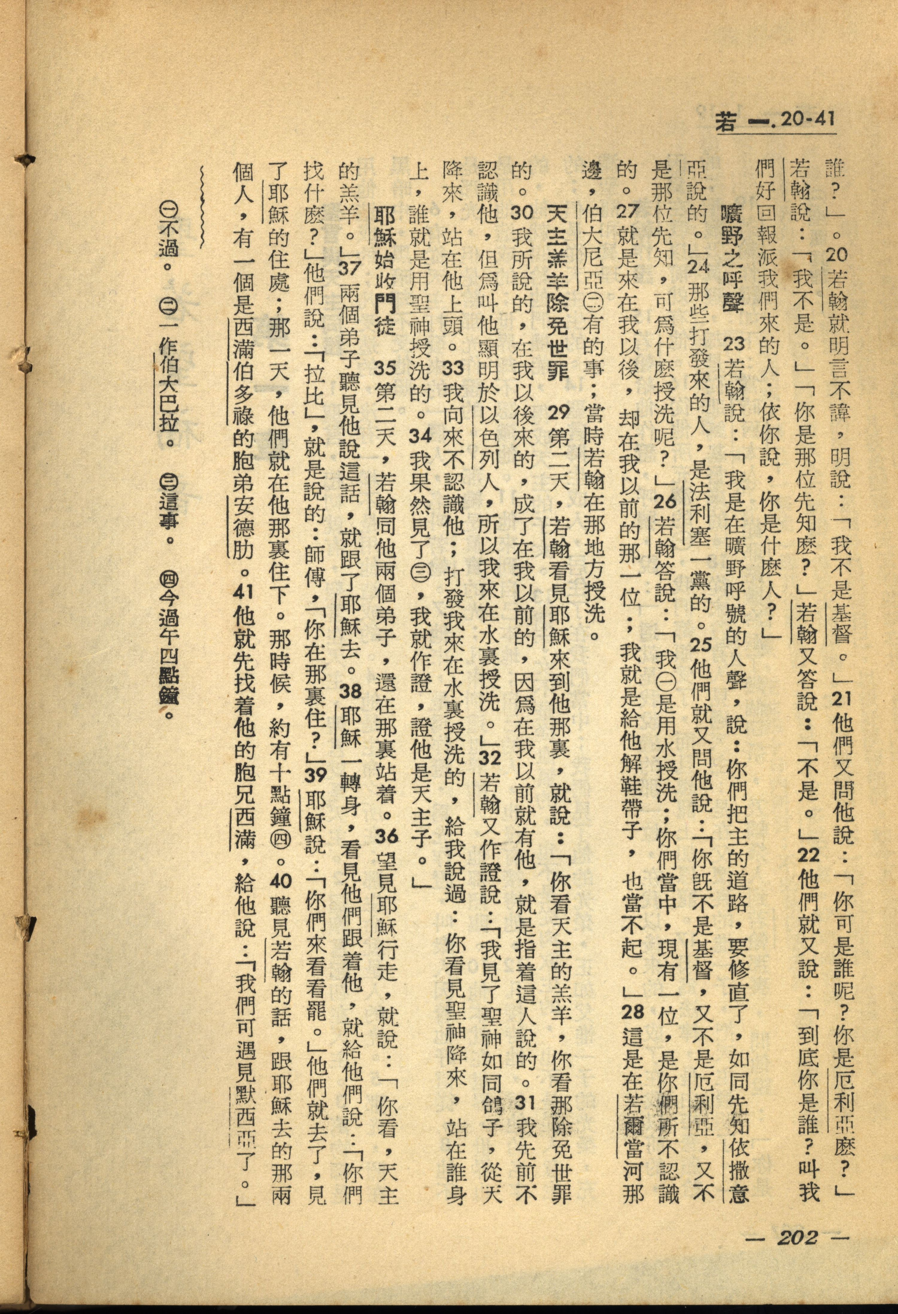 1956年新經全集 約翰福音 1 章 20 節到 1 章 41 節