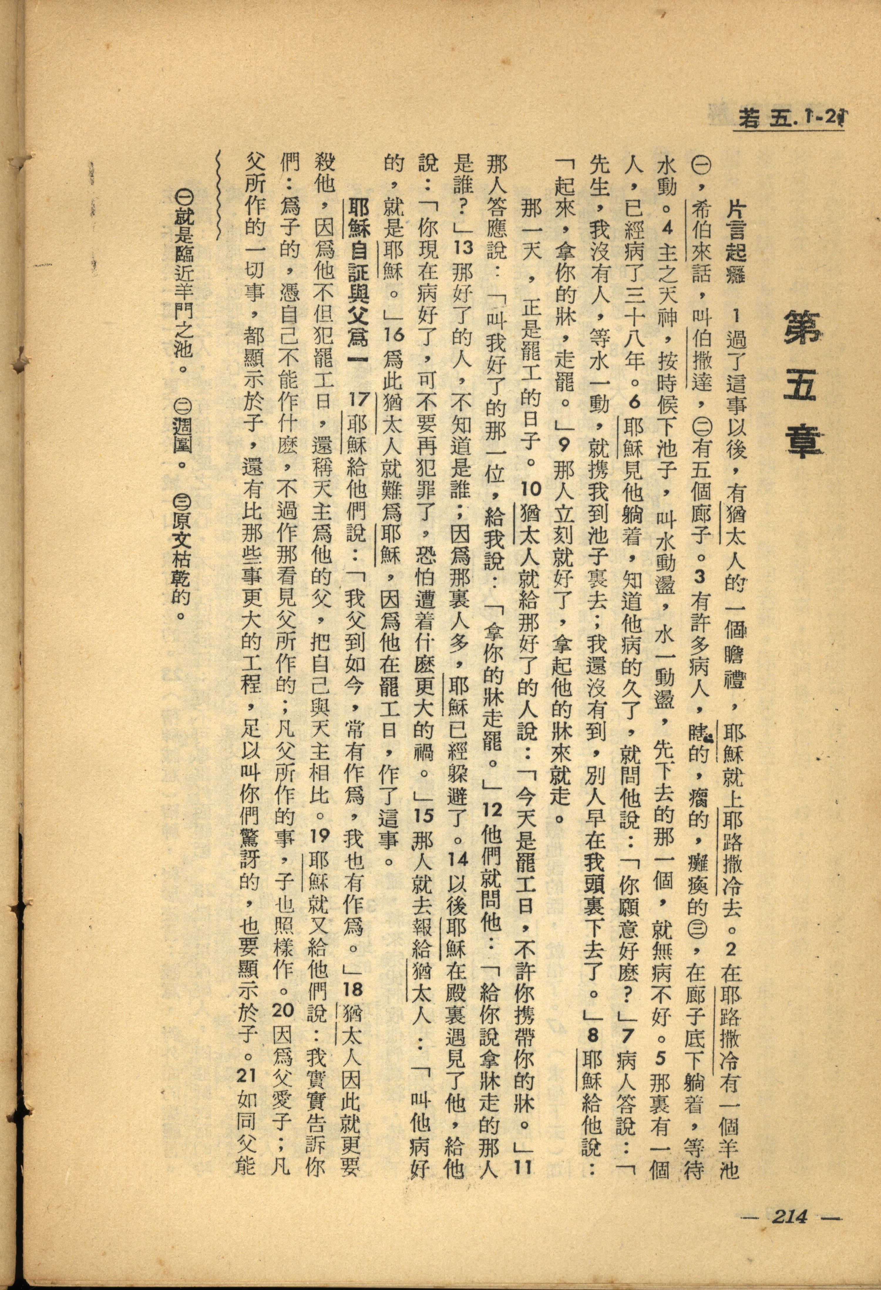 1956年新經全集 約翰福音 5 章 1 節到 5 章 21 節
