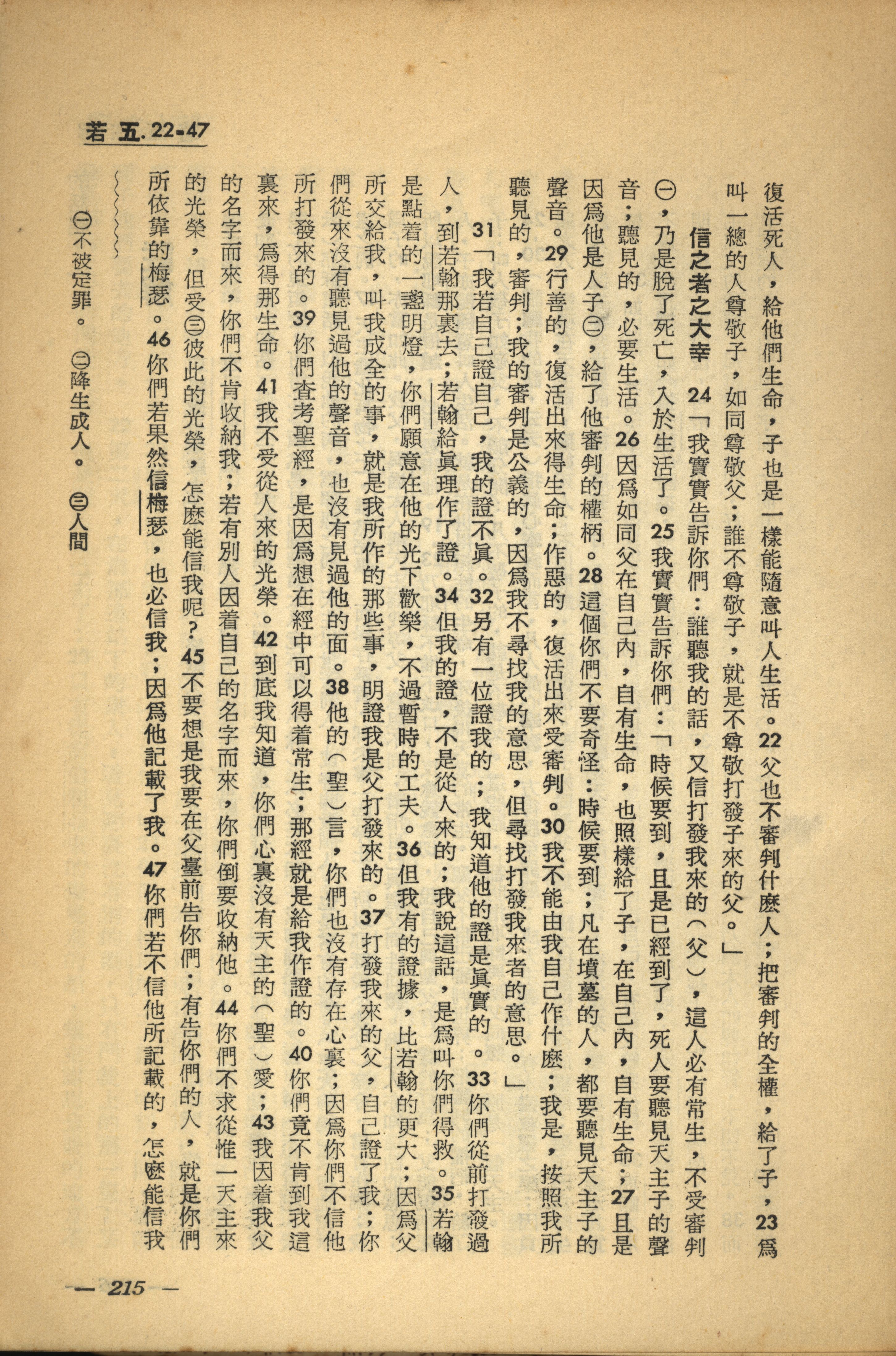1956年新經全集 約翰福音 5 章 22 節到 5 章 47 節