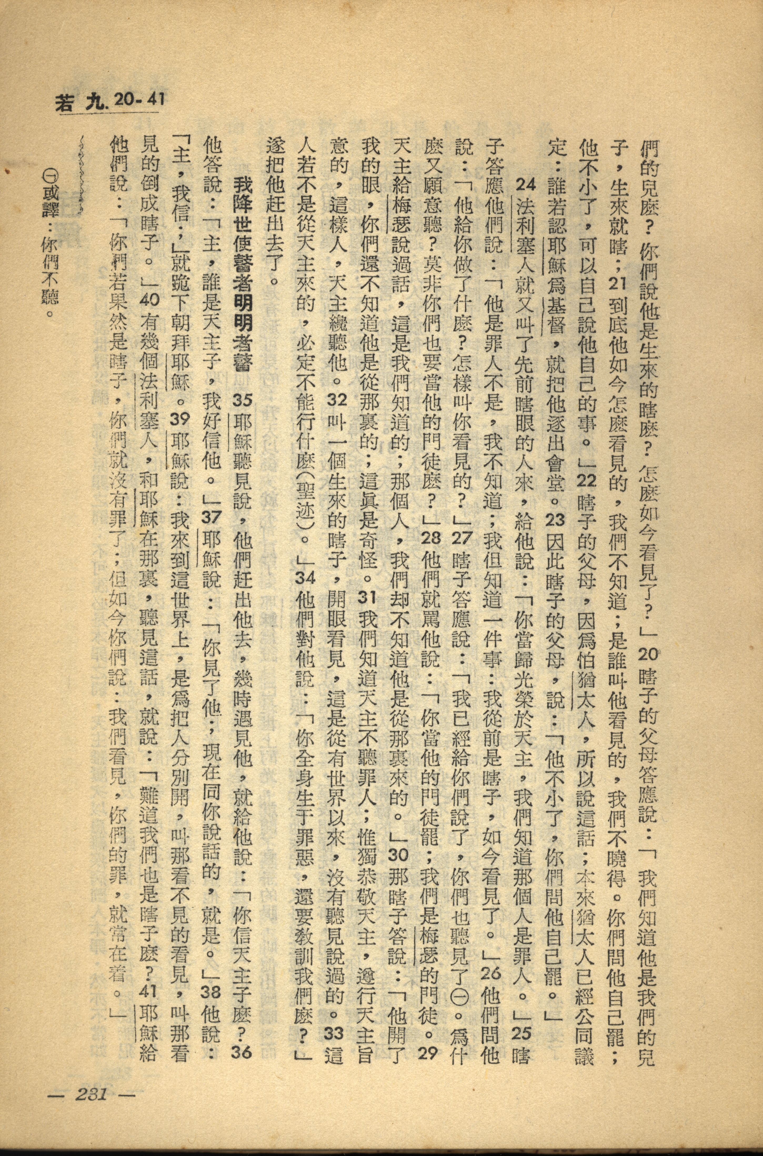 1956年新經全集 約翰福音 9 章 20 節到 9 章 41 節