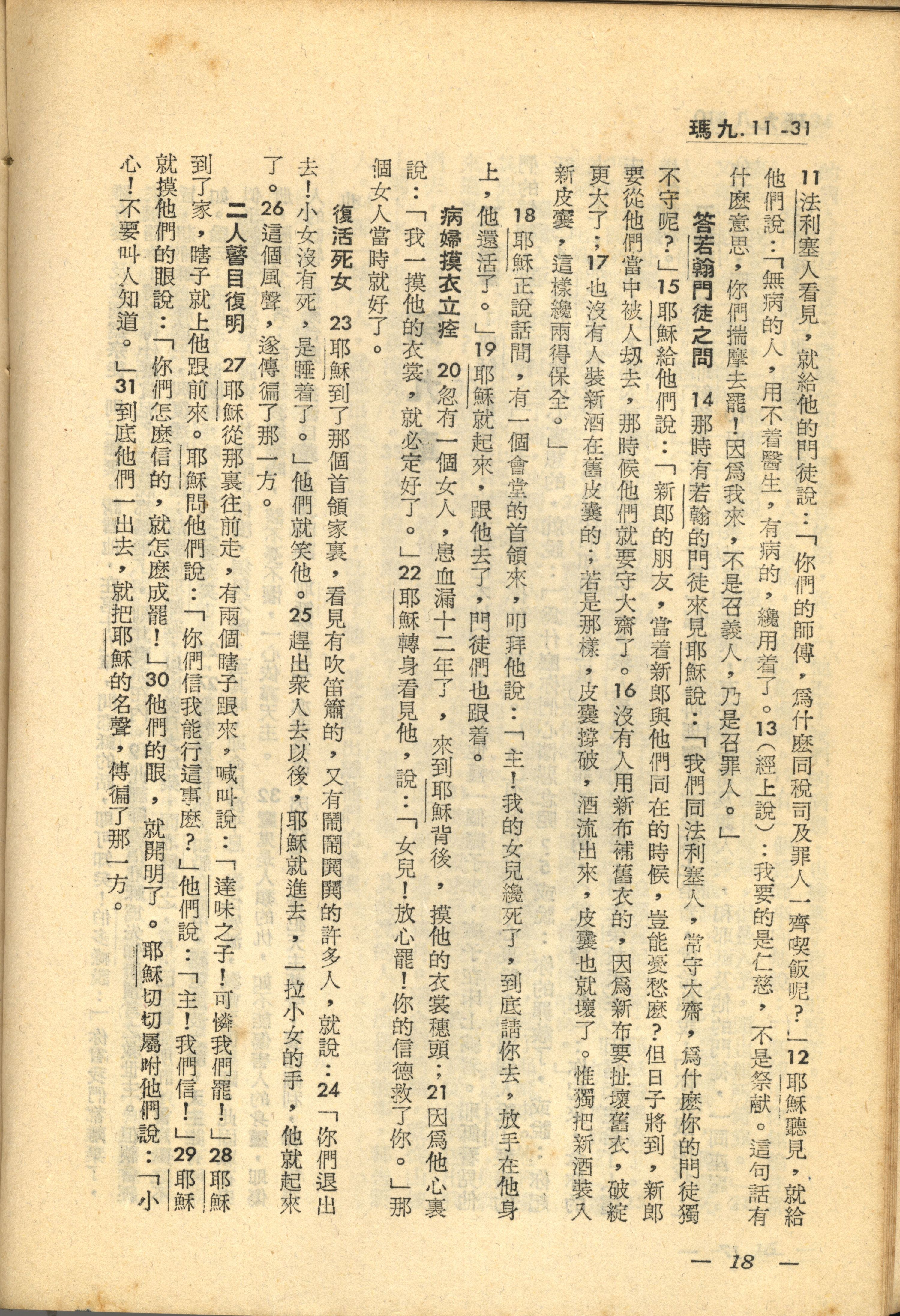 1956年新經全集 馬太福音 9 章 11 節到 9 章 31 節