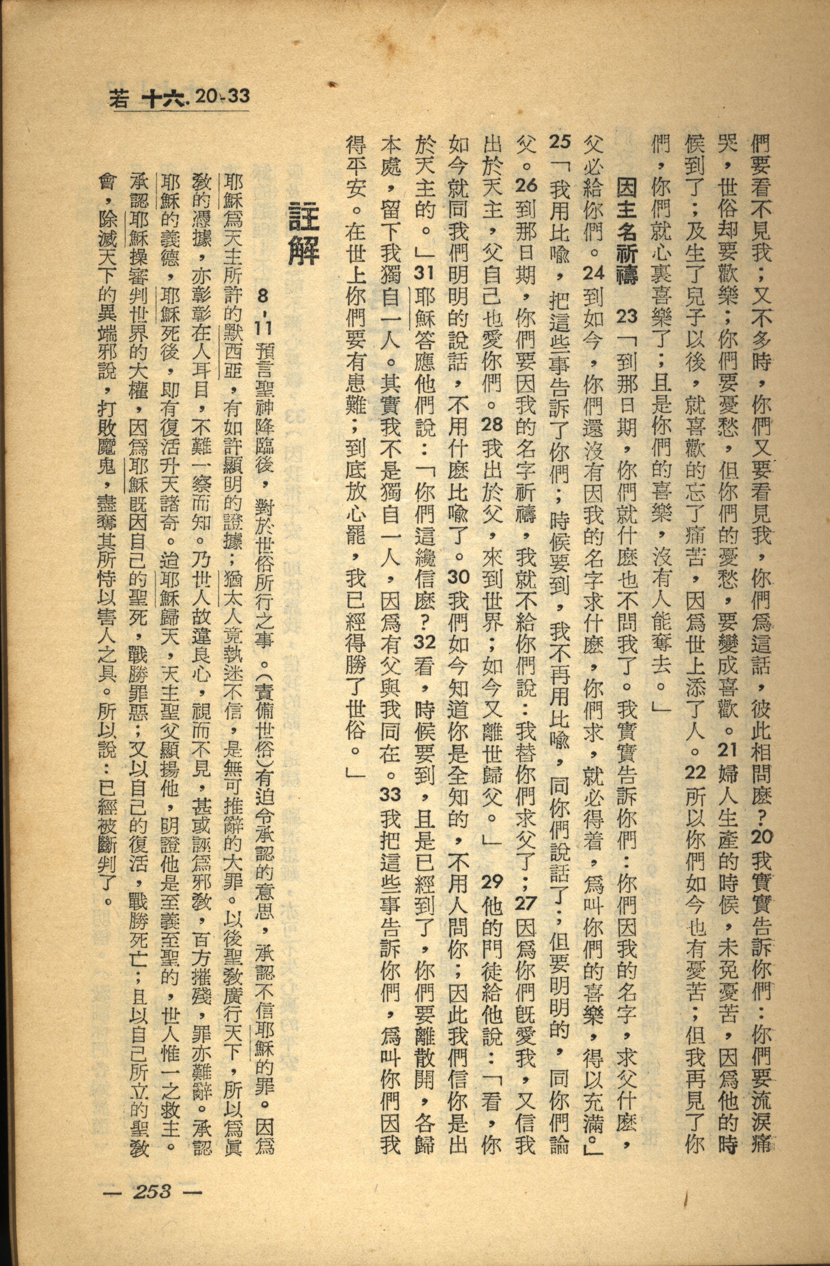 1956年新經全集 約翰福音 16 章 20 節到 16 章 33 節