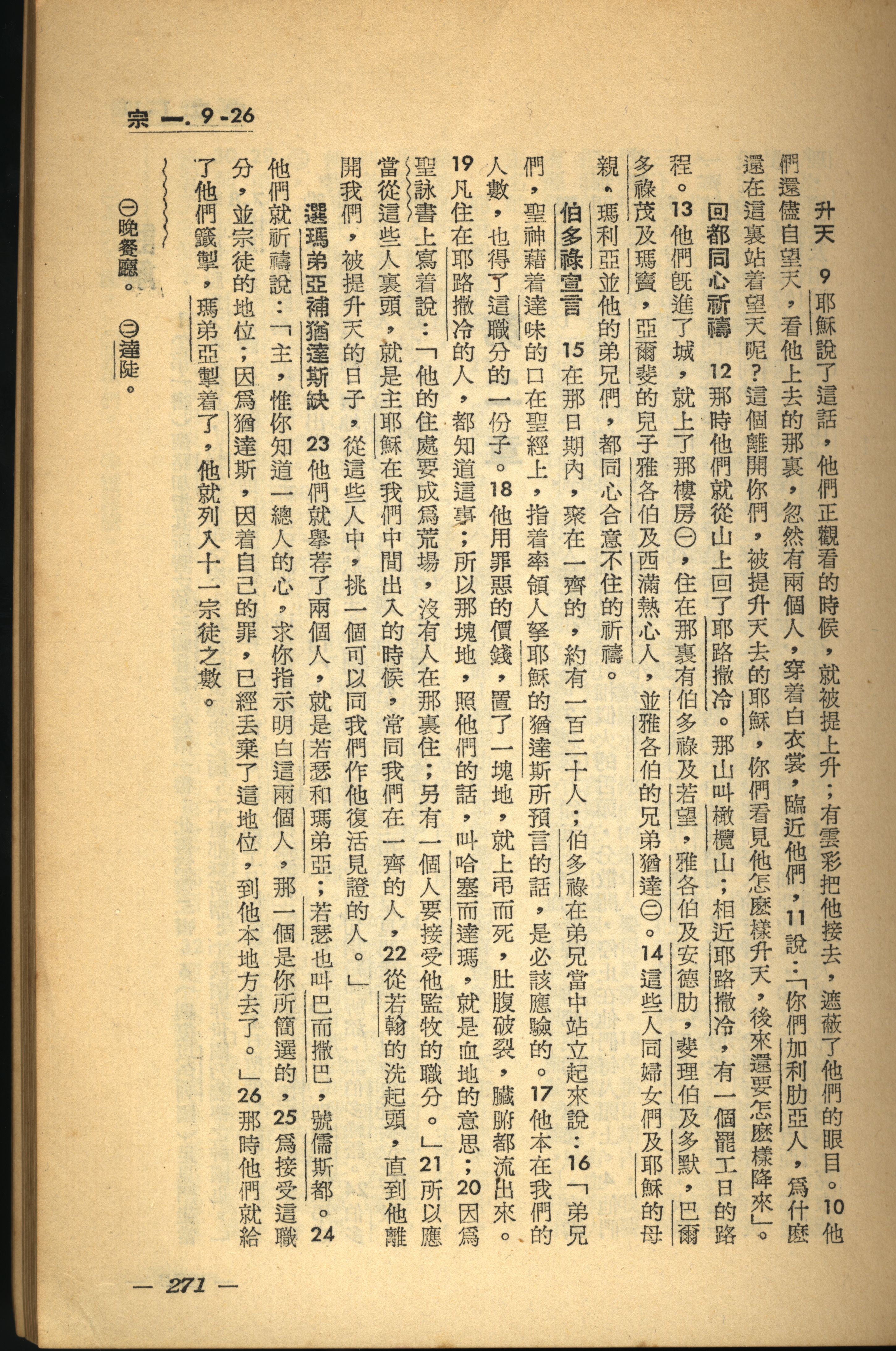 1956年新經全集 使徒行傳 1 章 9 節到 1 章 26 節