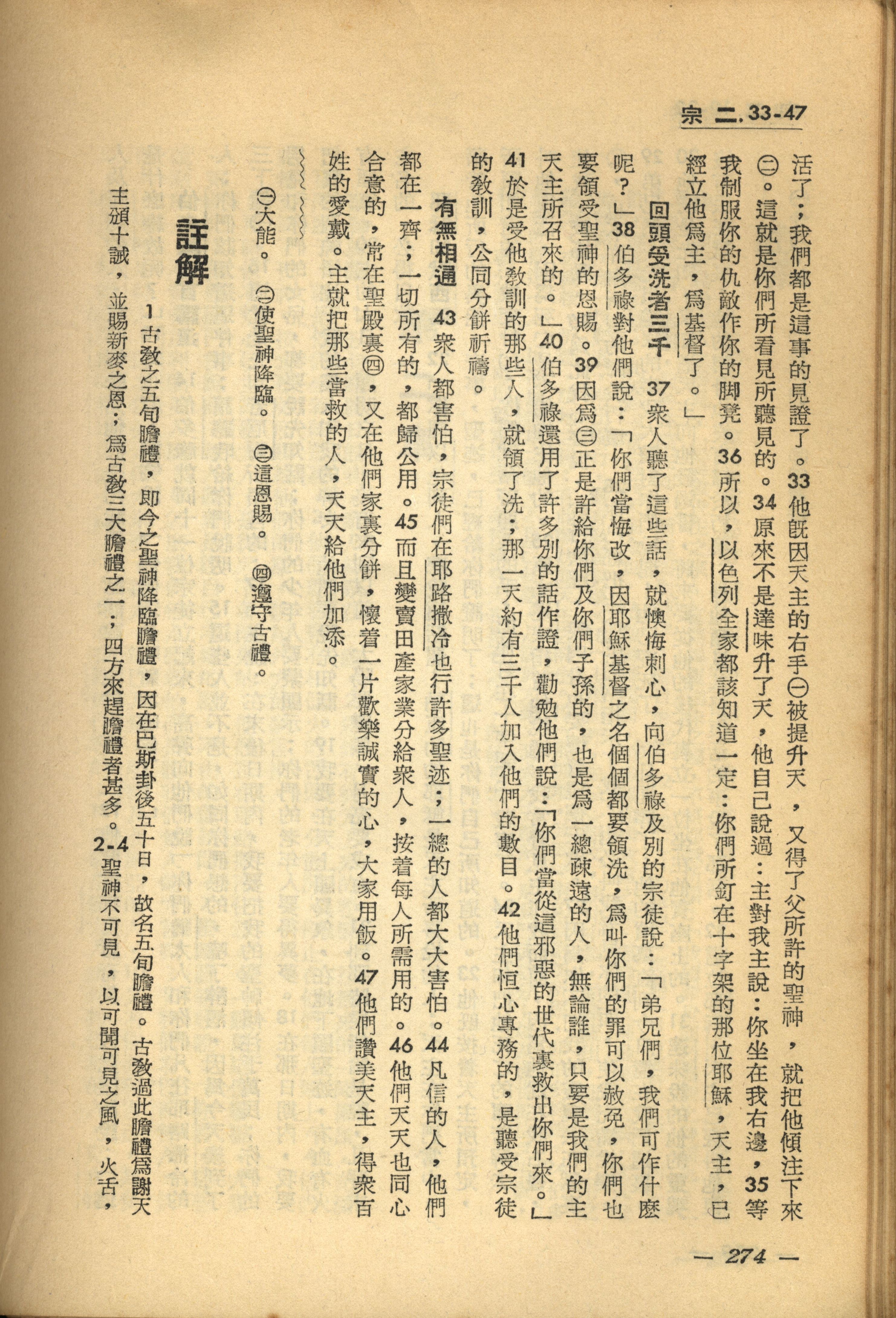 1956年新經全集 使徒行傳 2 章 33 節到 2 章 47 節