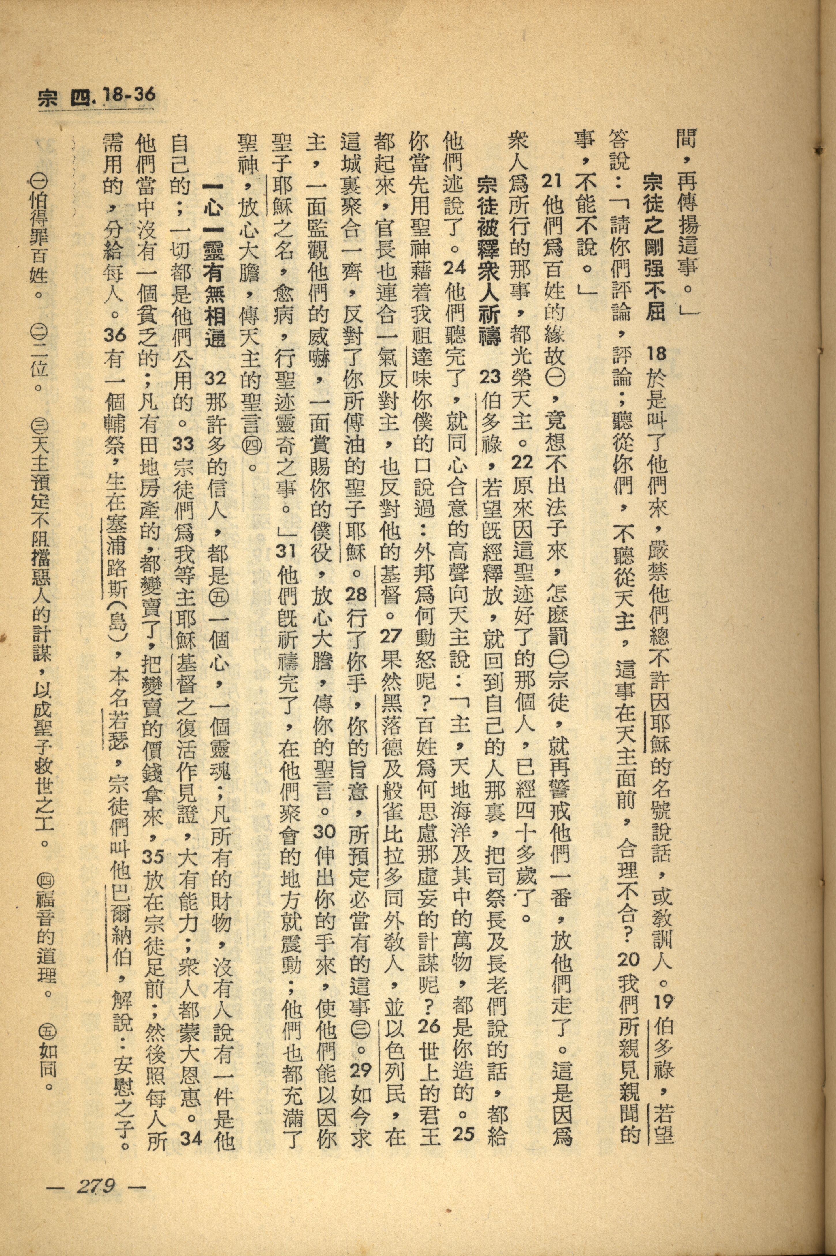 1956年新經全集 使徒行傳 4 章 18 節到 4 章 36 節