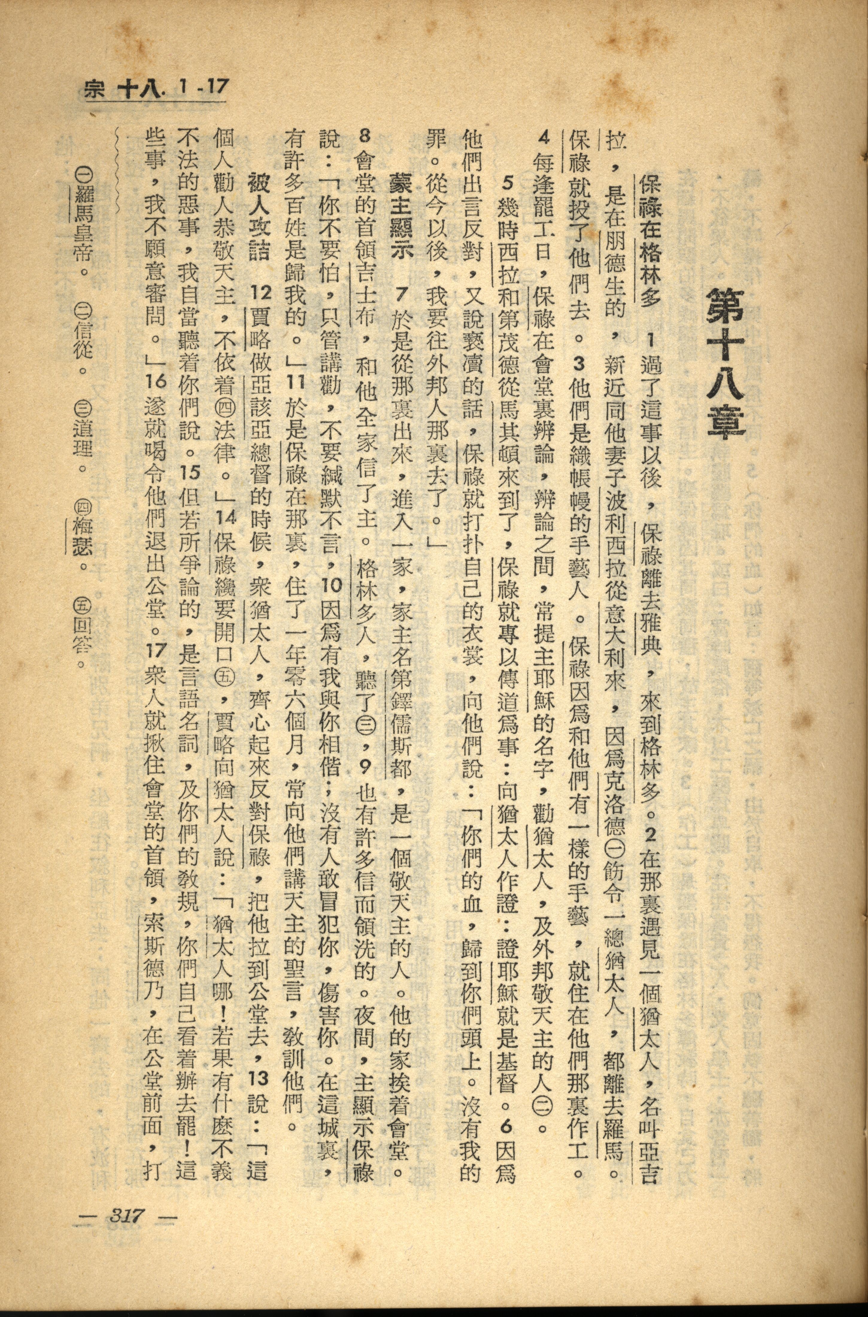 1956年新經全集 使徒行傳 18 章 1 節到 18 章 17 節