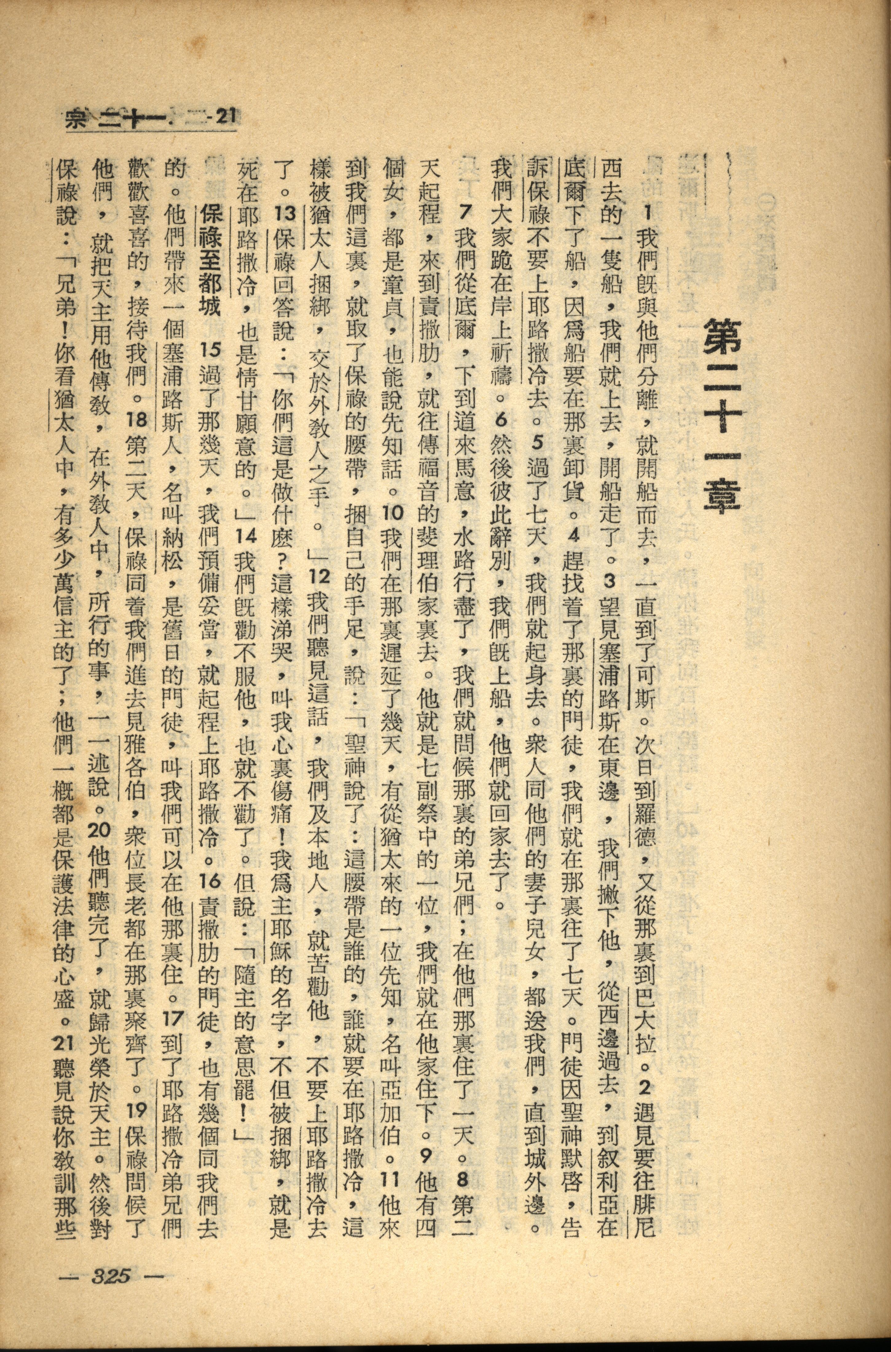 1956年新經全集 使徒行傳 21 章 1 節到 21 章 21 節