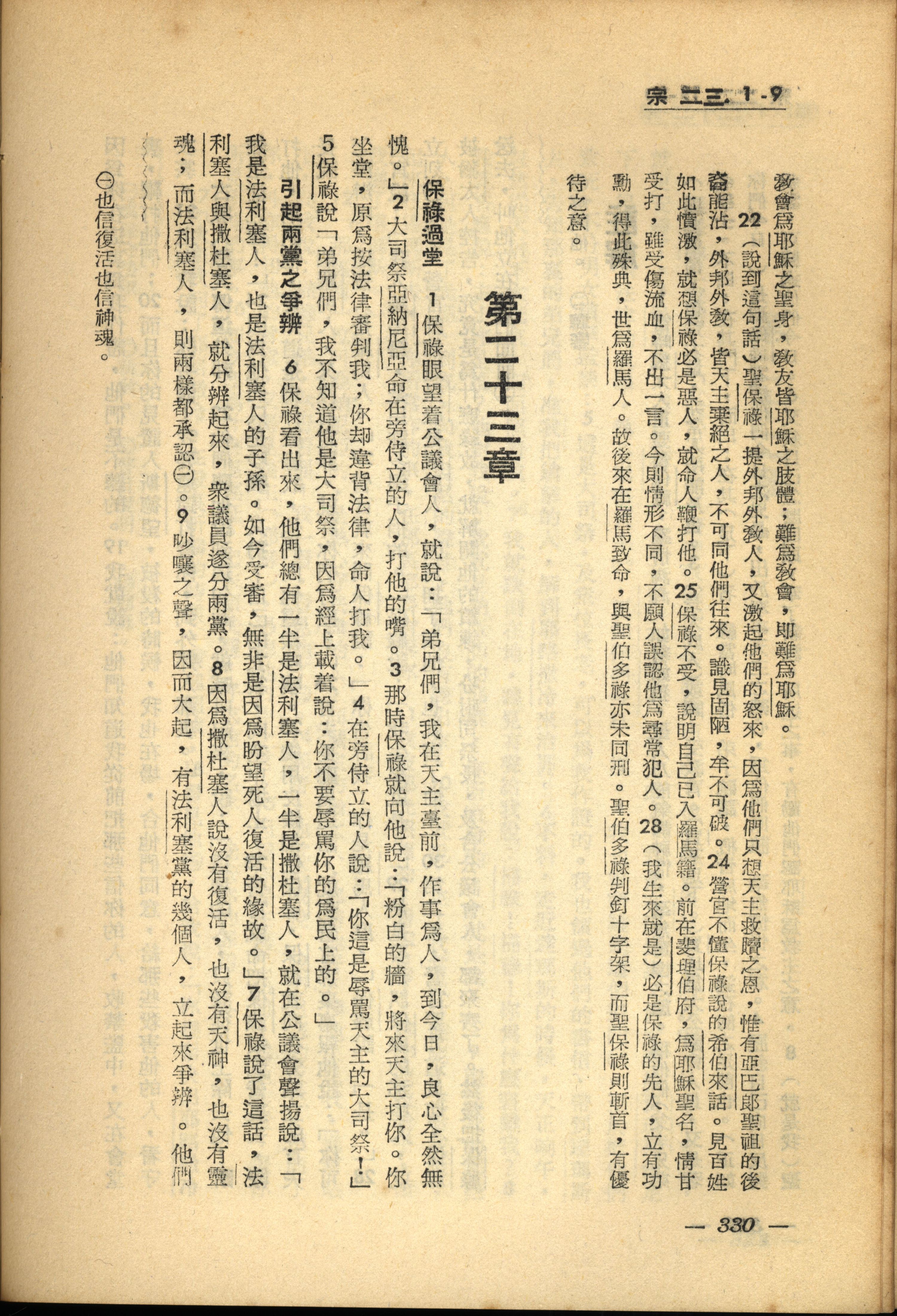 1956年新經全集 使徒行傳 23 章 1 節到 23 章 9 節