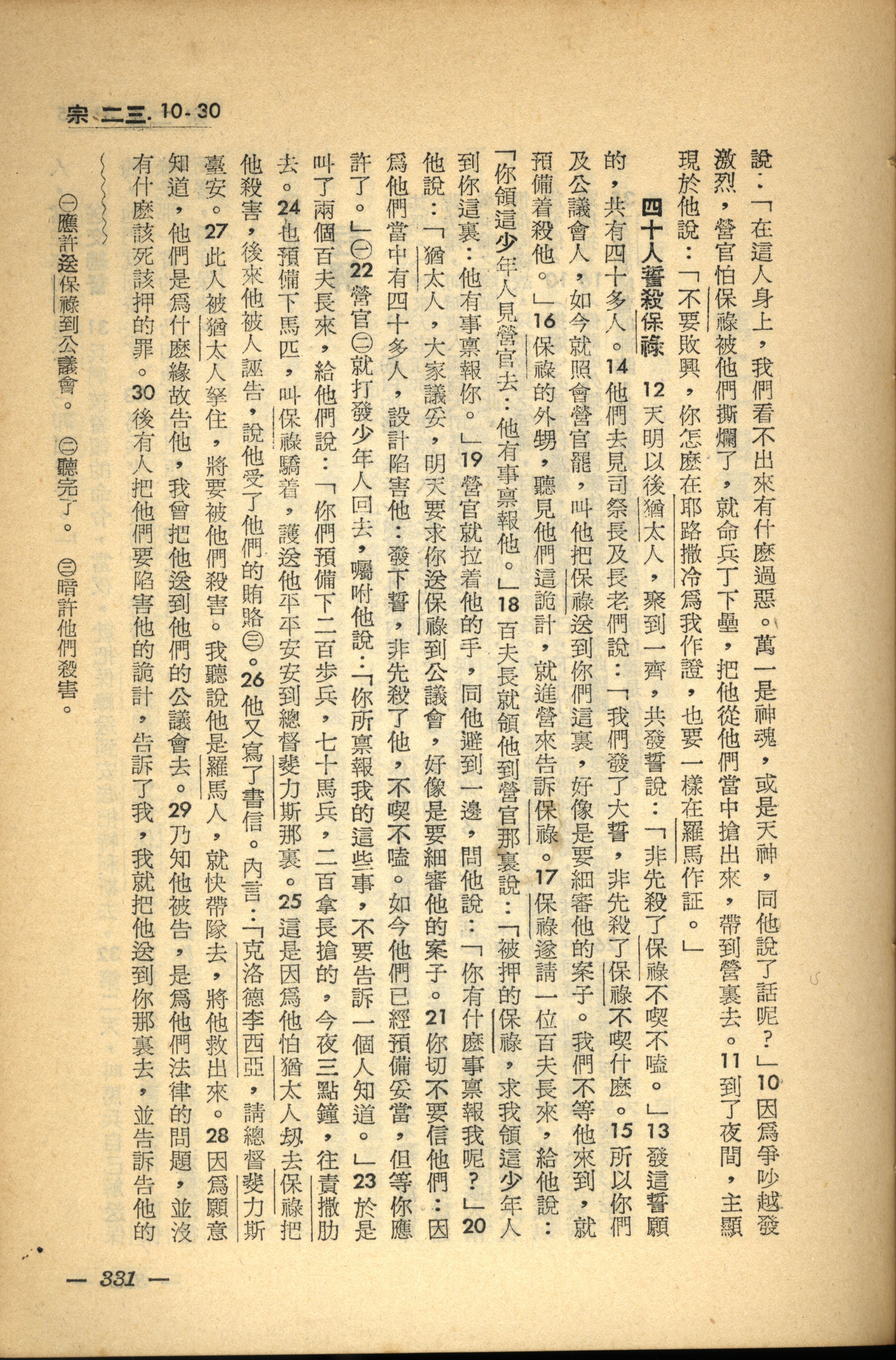 1956年新經全集 使徒行傳 23 章 10 節到 23 章 30 節