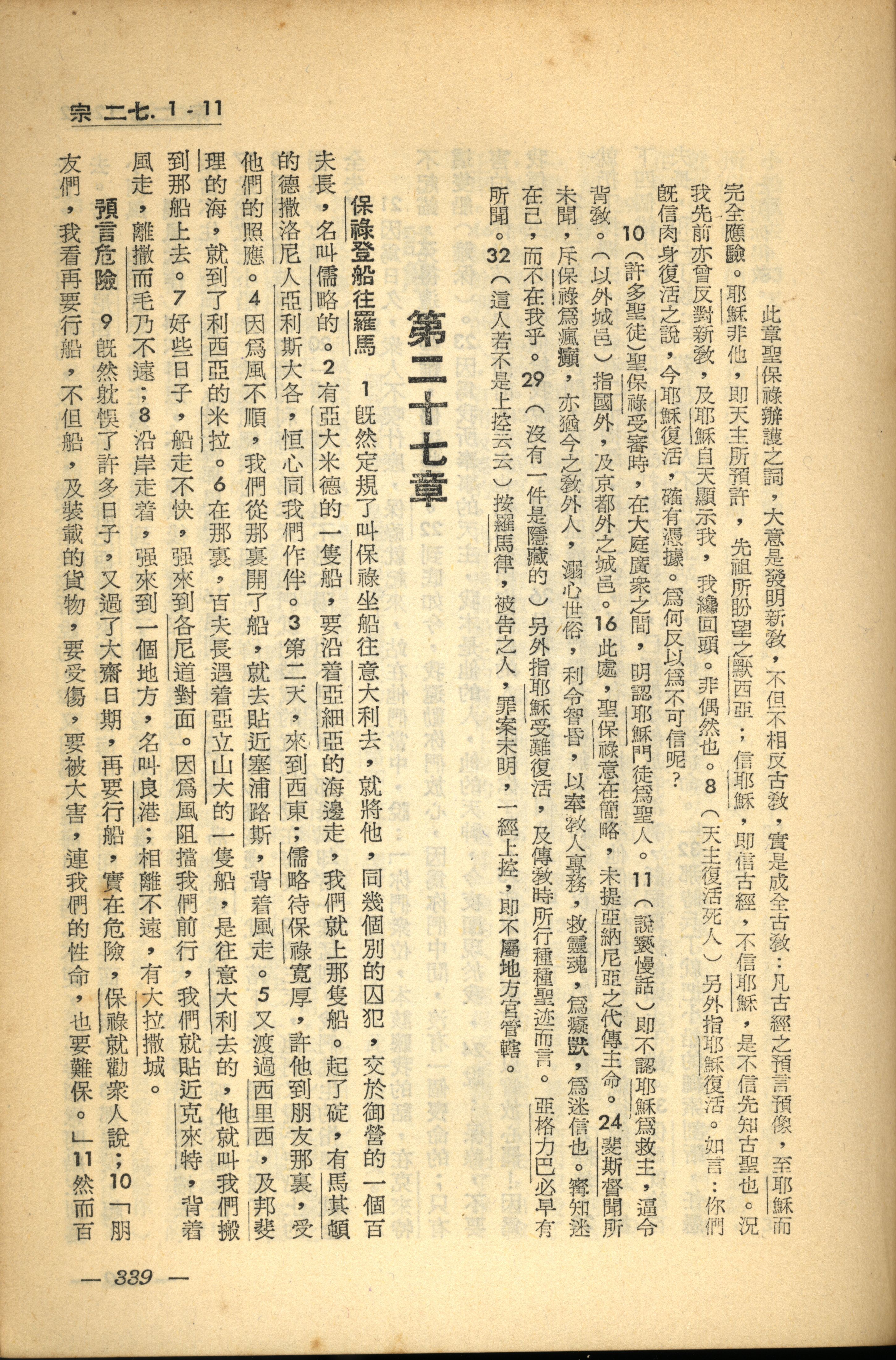 1956年新經全集 使徒行傳 27 章 1 節到 27 章 11 節