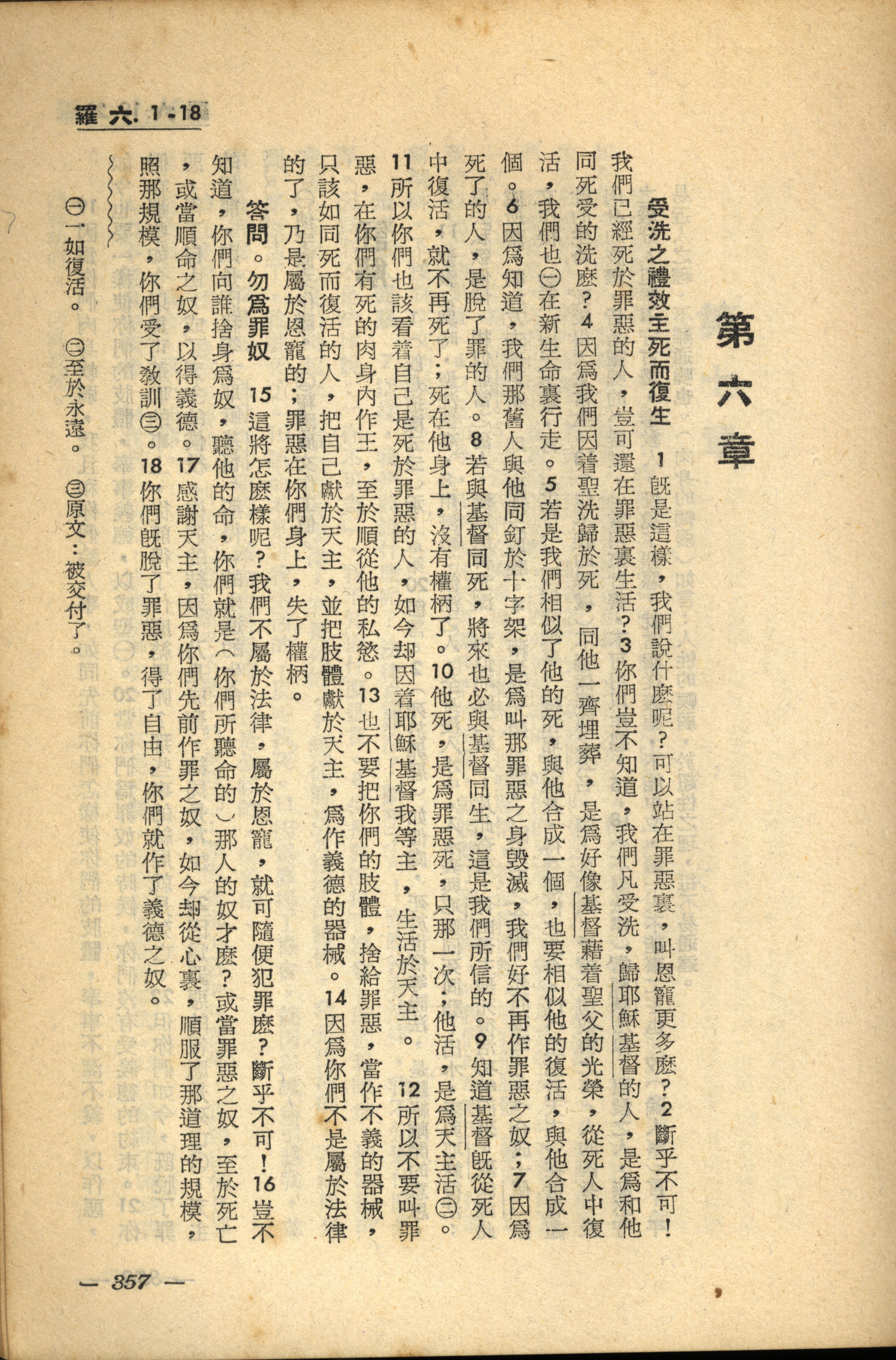 1956年新經全集 羅馬書 6 章 1 節到 6 章 18 節