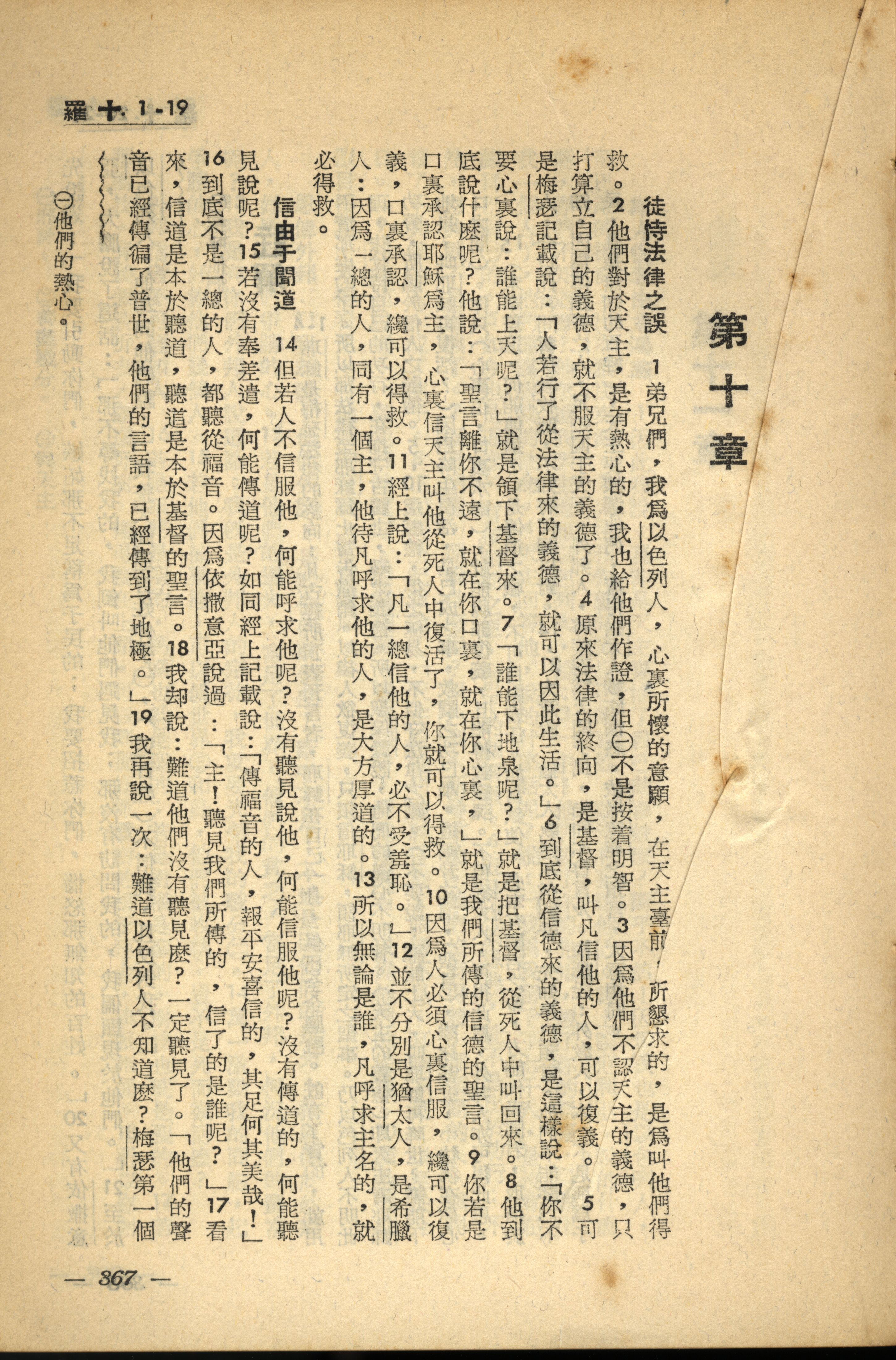 1956年新經全集 羅馬書 10 章 1 節到 10 章 19 節