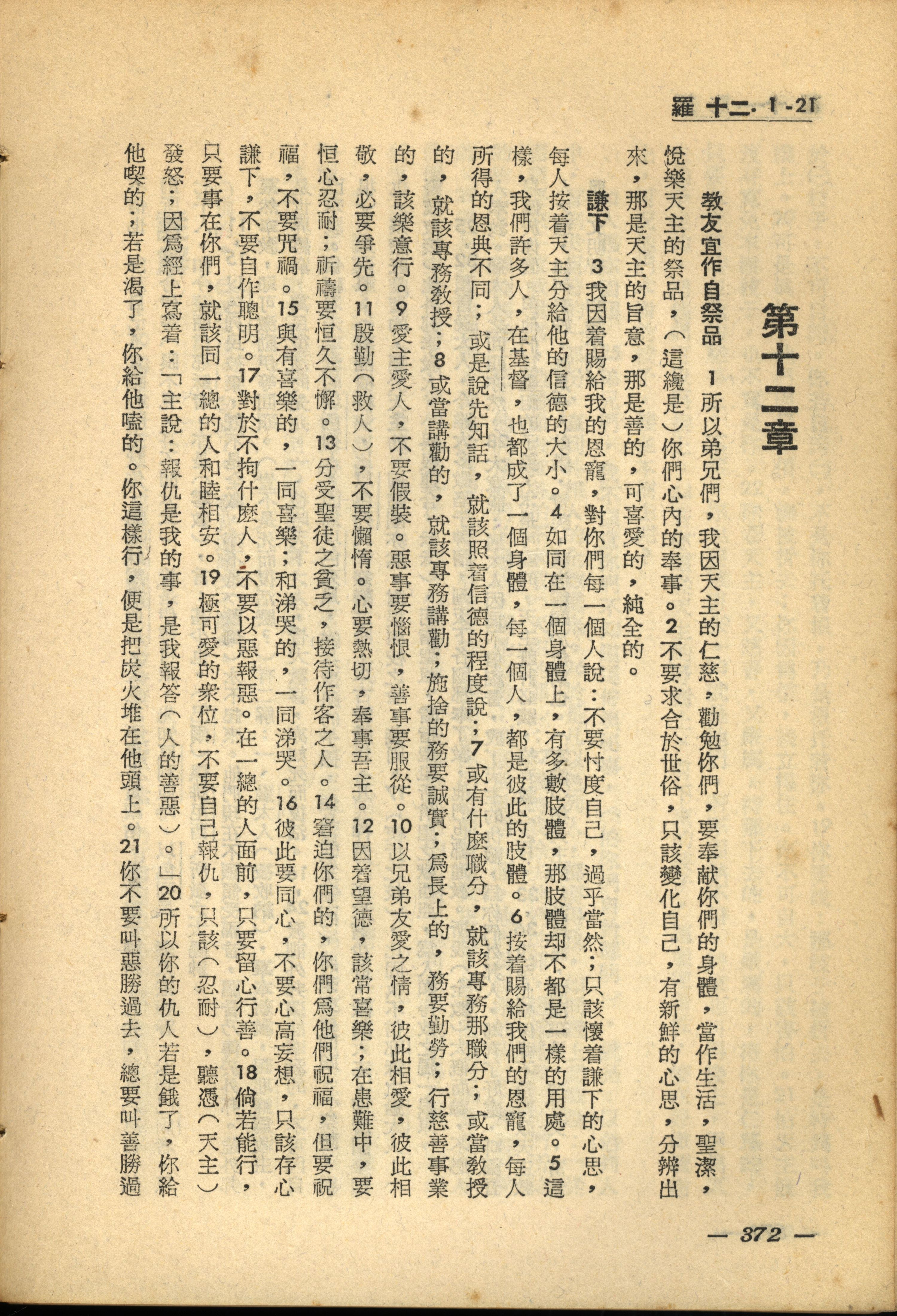 1956年新經全集 羅馬書 12 章 1 節到 12 章 21 節