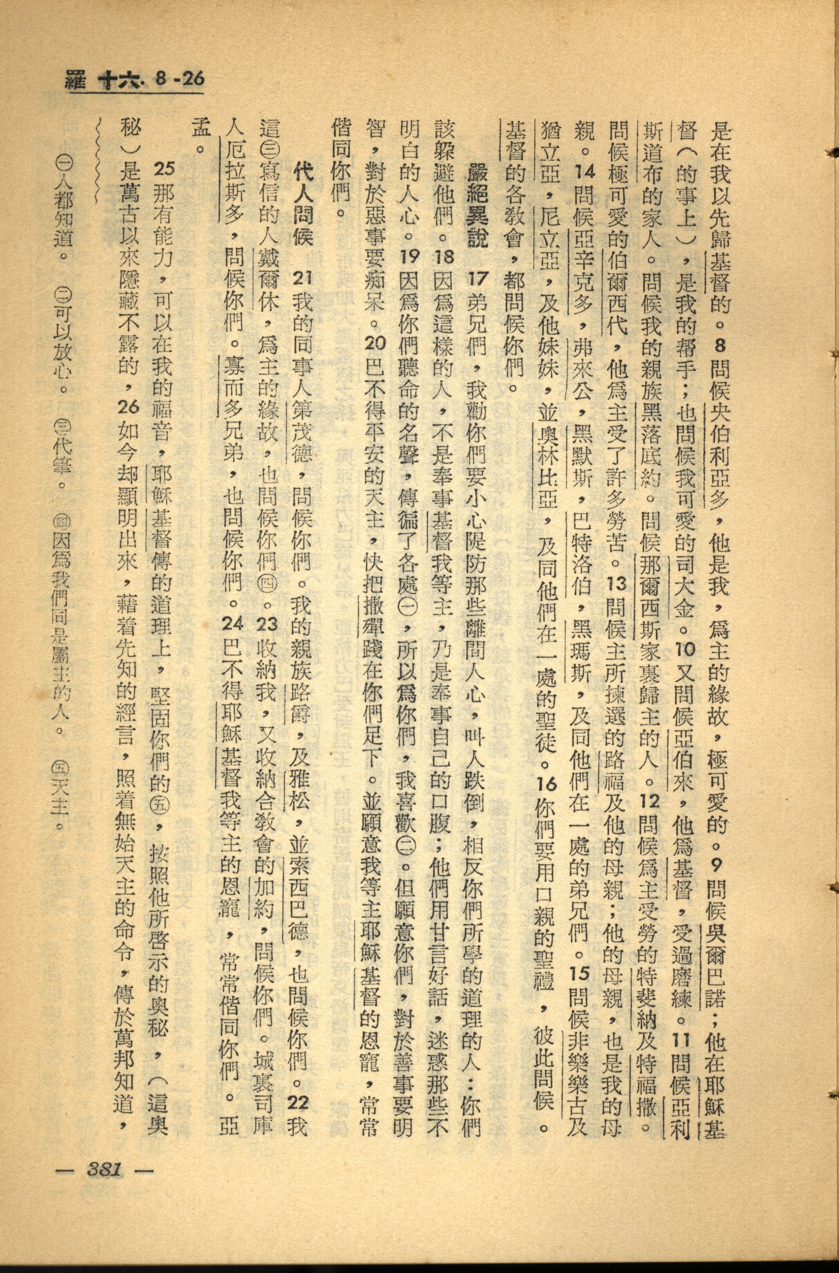 1956年新經全集 羅馬書 16 章 8 節到 16 章 26 節