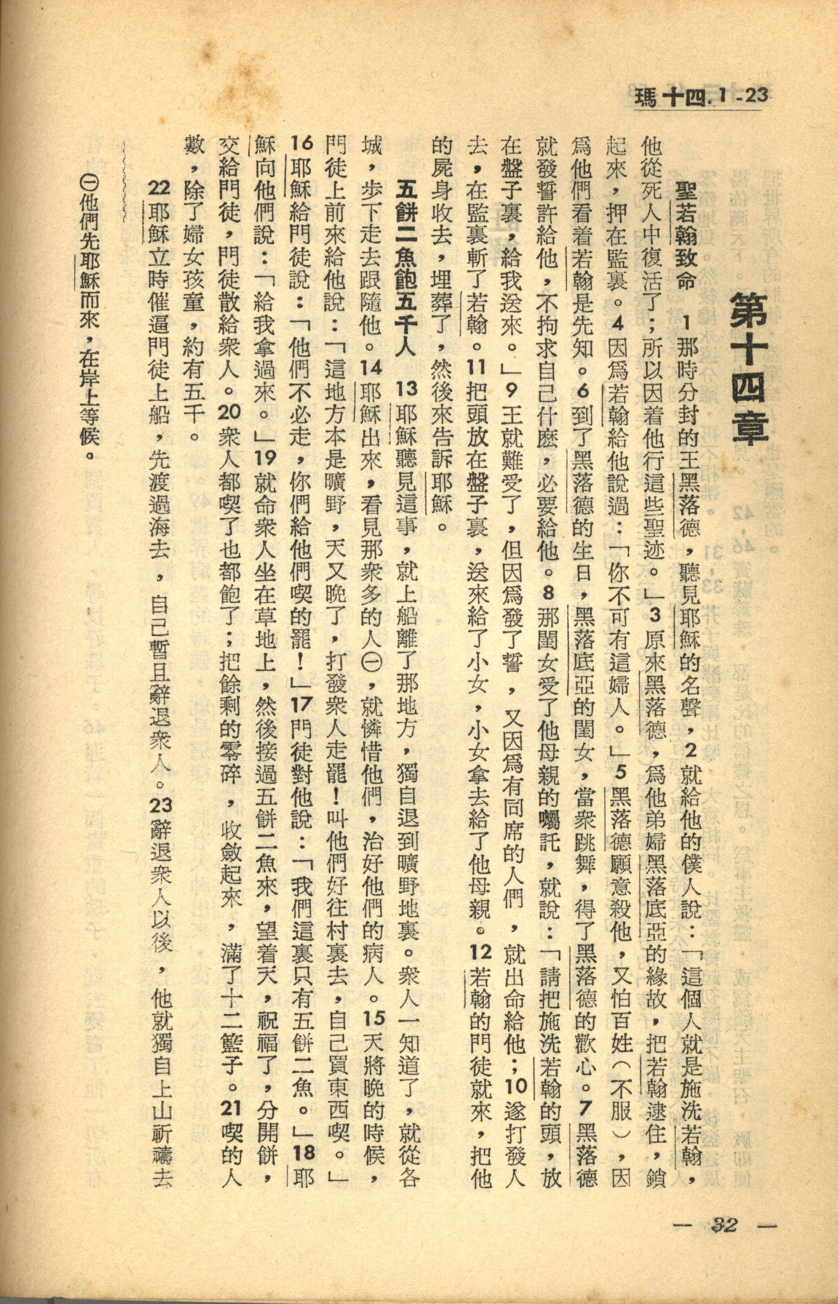 1956年新經全集 馬太福音 14 章 1 節到 14 章 23 節