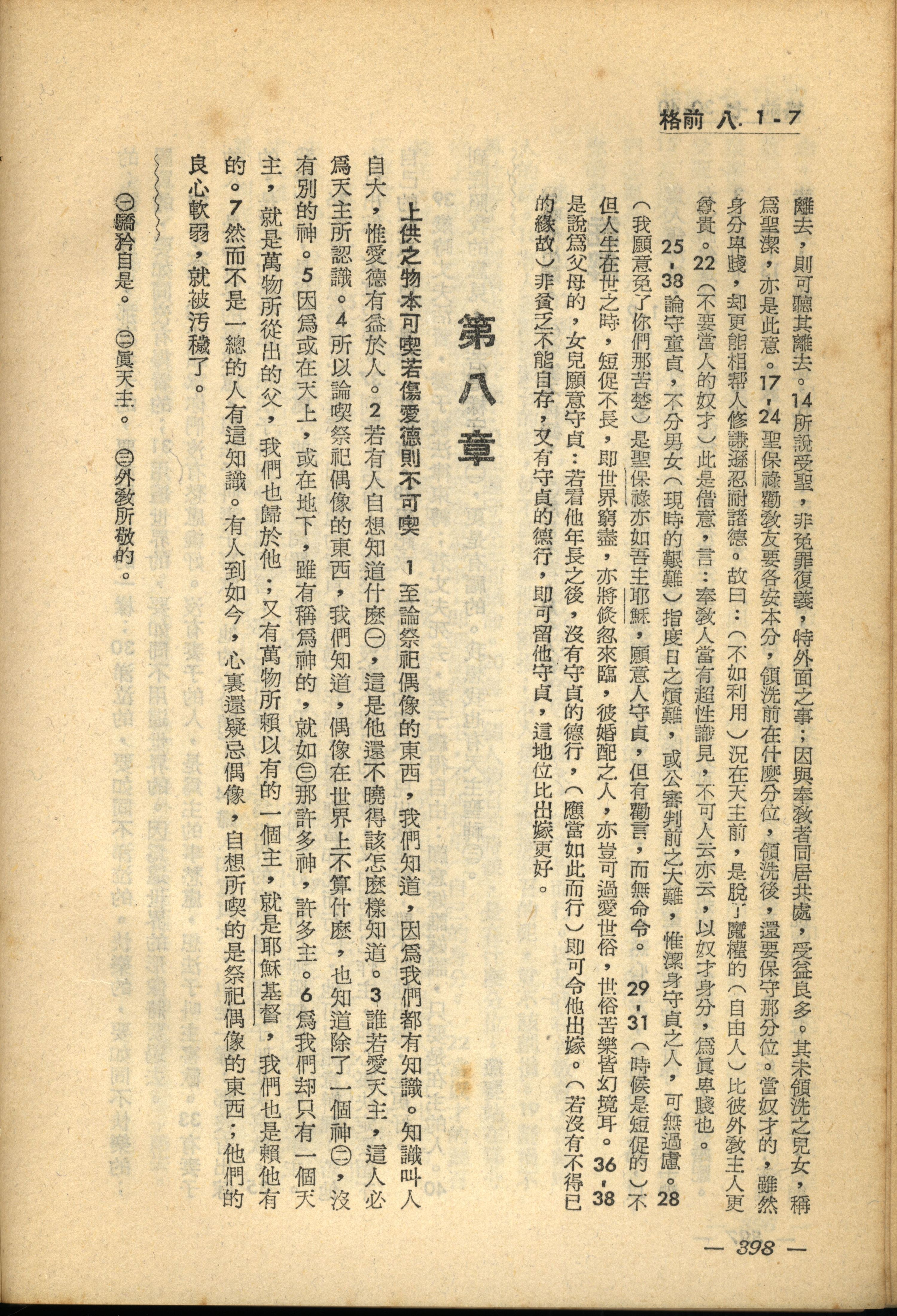 1956年新經全集 哥林多前書 8 章 1 節到 8 章 7 節