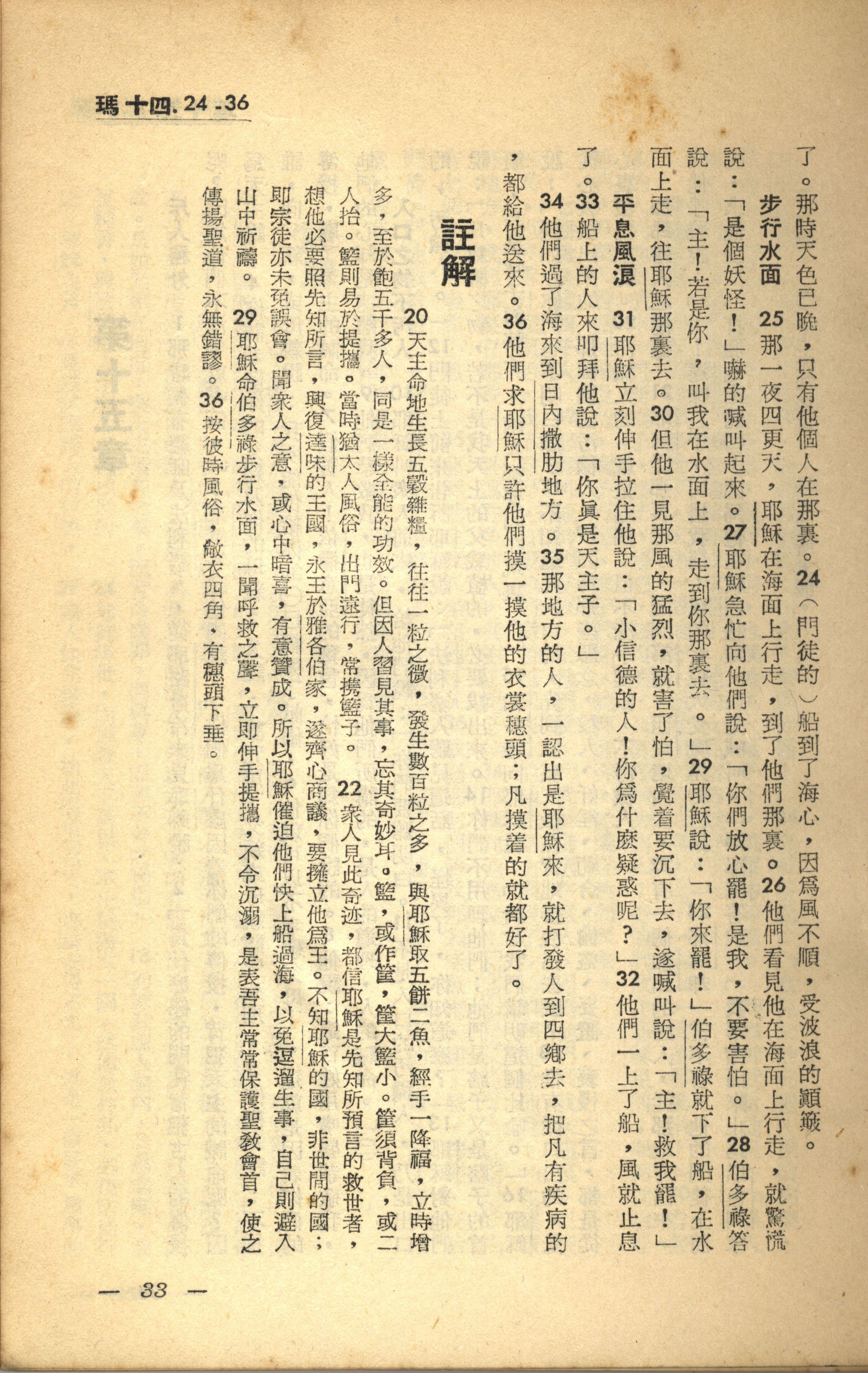 1956年新經全集 馬太福音 14 章 24 節到 14 章 36 節
