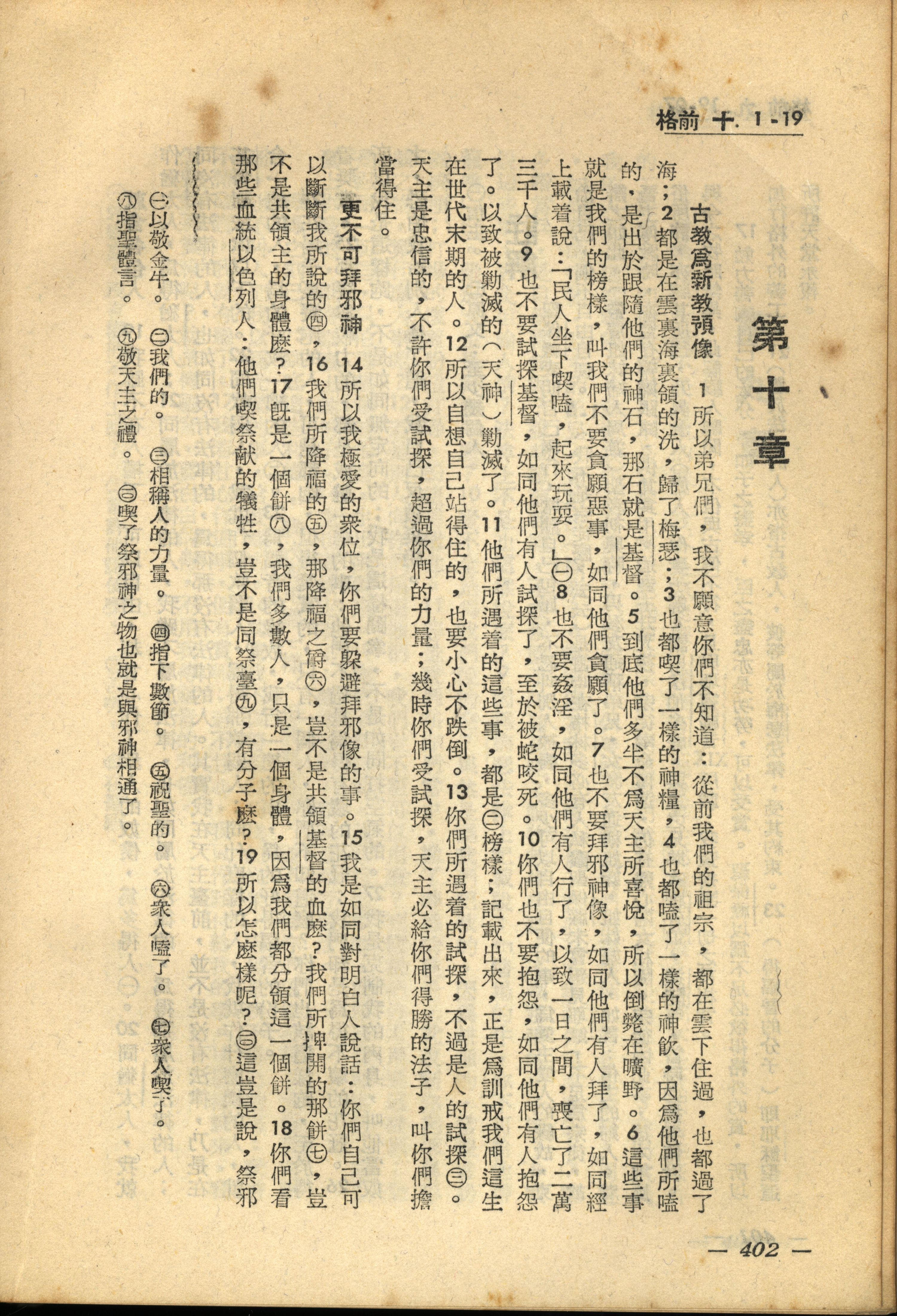 1956年新經全集 哥林多前書 10 章 1 節到 10 章 19 節