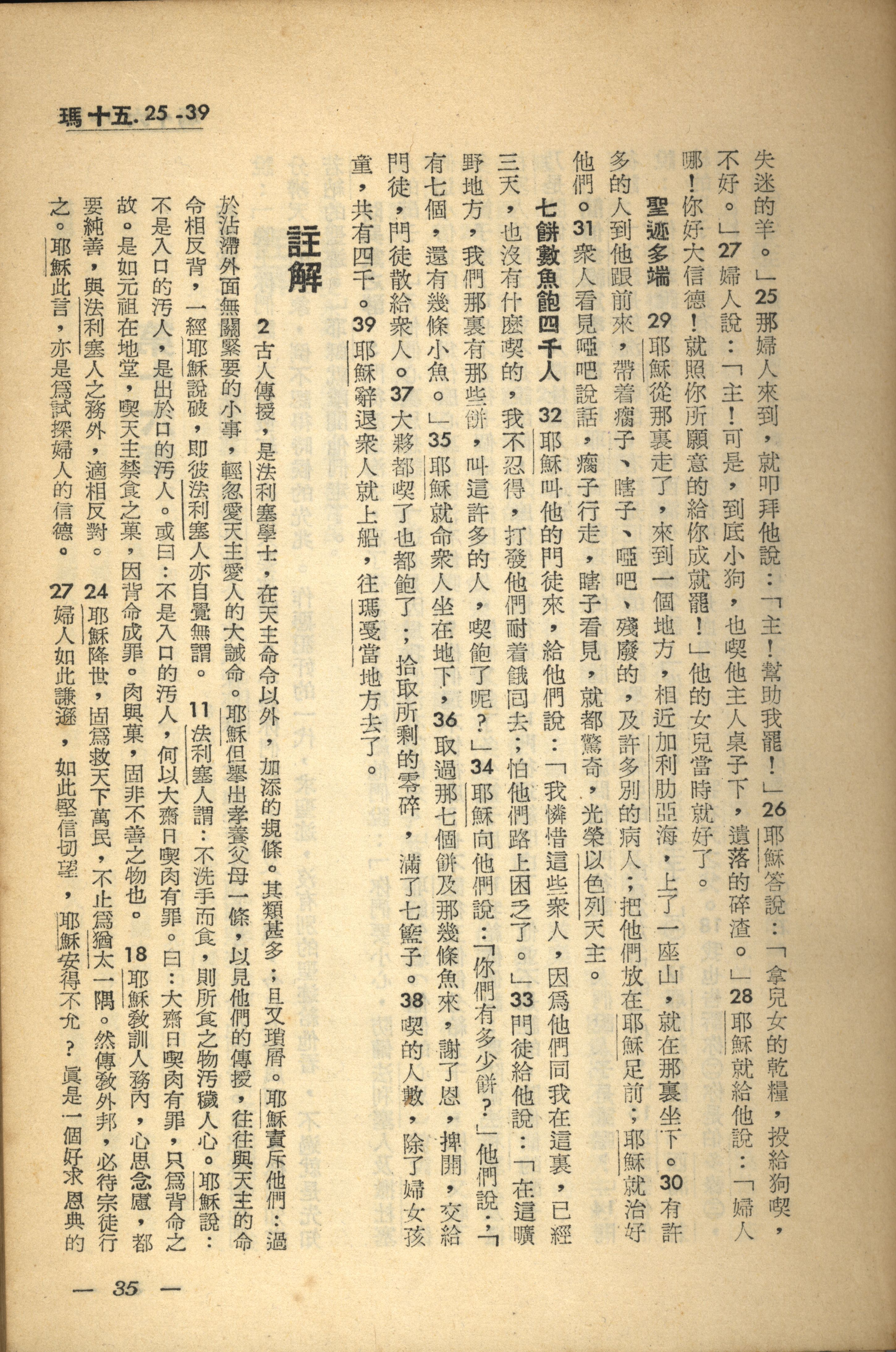 1956年新經全集 馬太福音 15 章 25 節到 15 章 39 節
