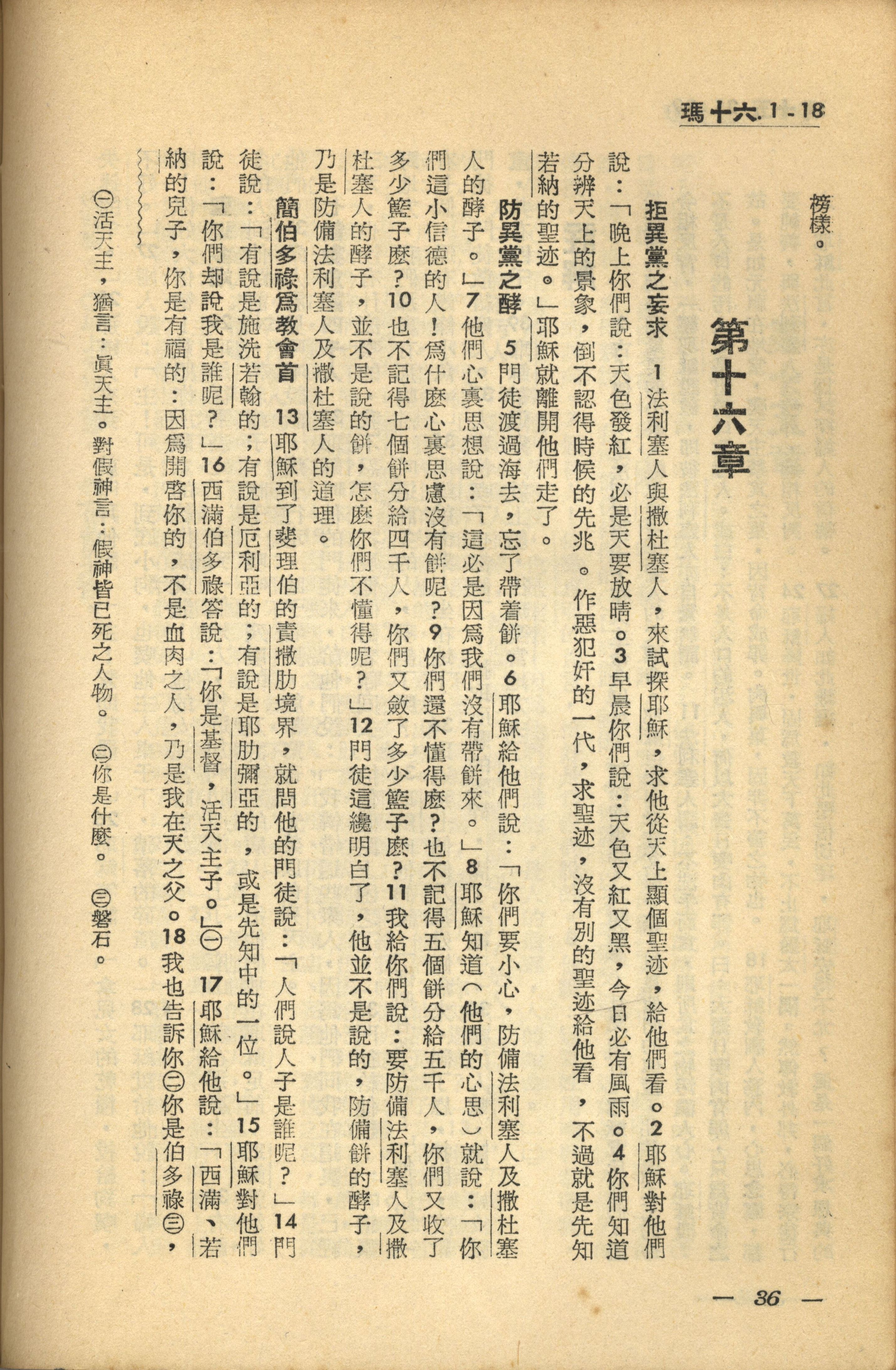 1956年新經全集 馬太福音 16 章 1 節到 16 章 18 節