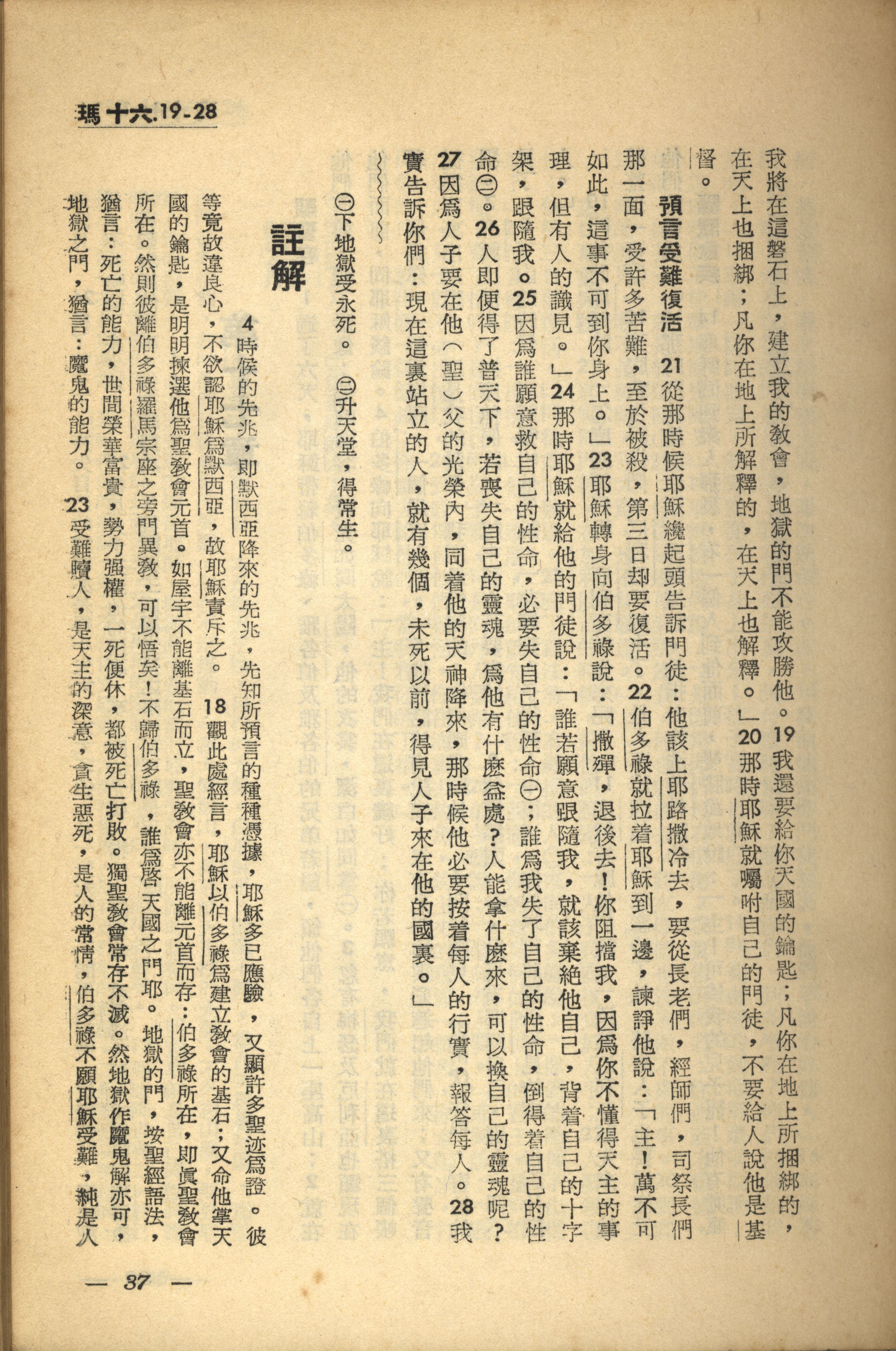 1956年新經全集 馬太福音 16 章 19 節到 16 章 28 節