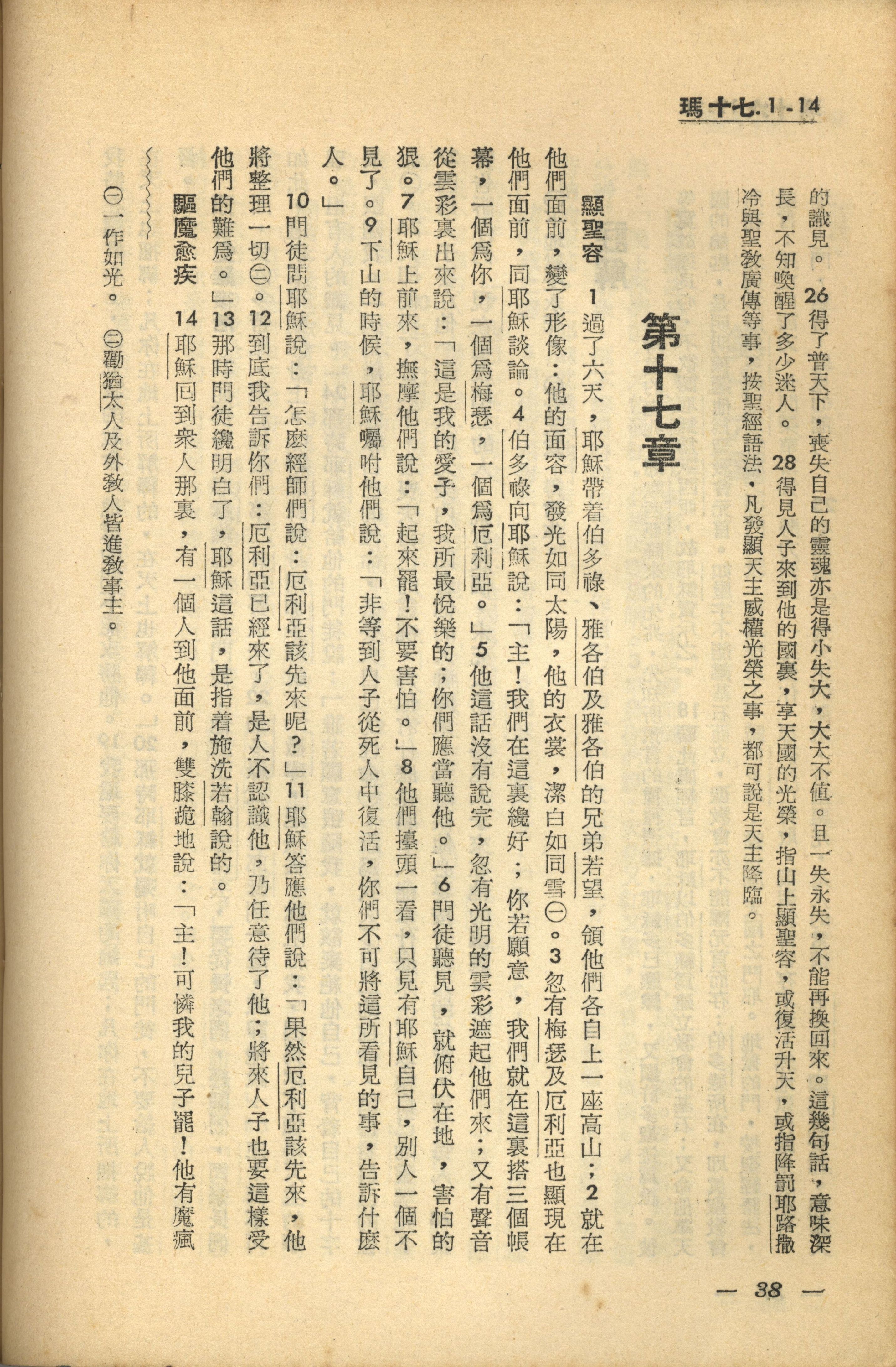 1956年新經全集 馬太福音 17 章 1 節到 17 章 14 節