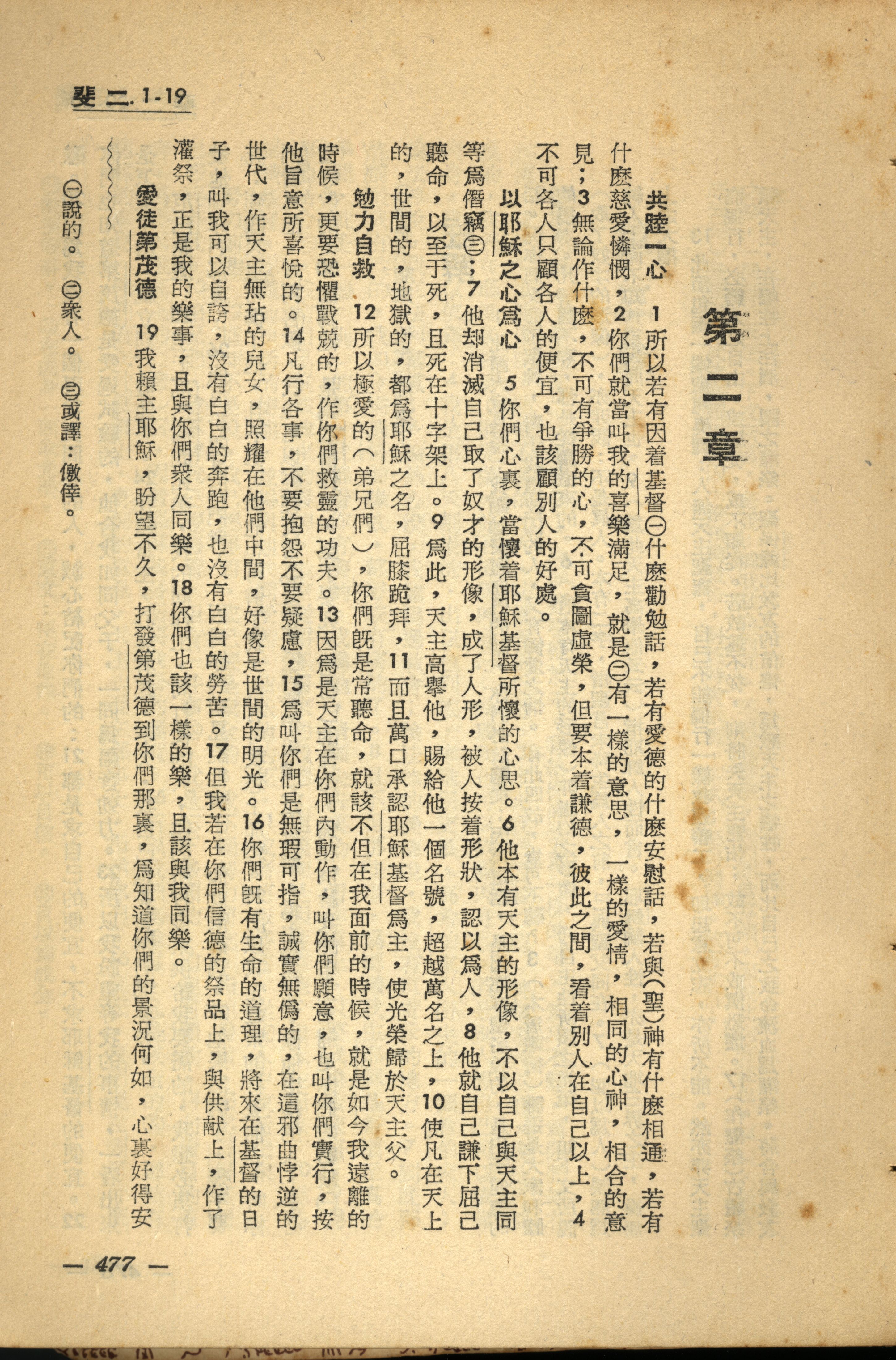 1956年新經全集 腓立比書 2 章 1 節到 2 章 19 節