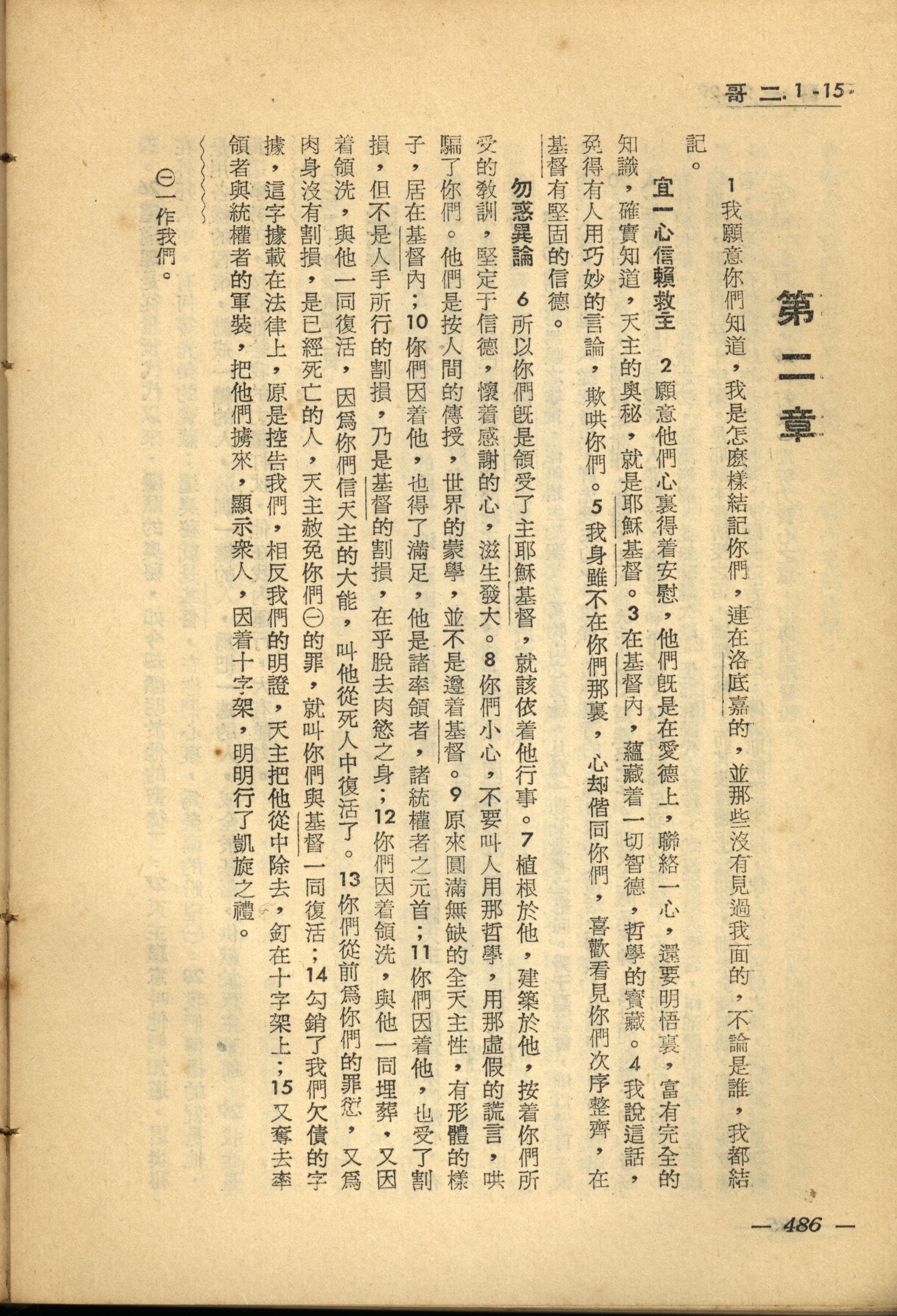 1956年新經全集 歌羅西書 2 章 1 節到 2 章 15 節