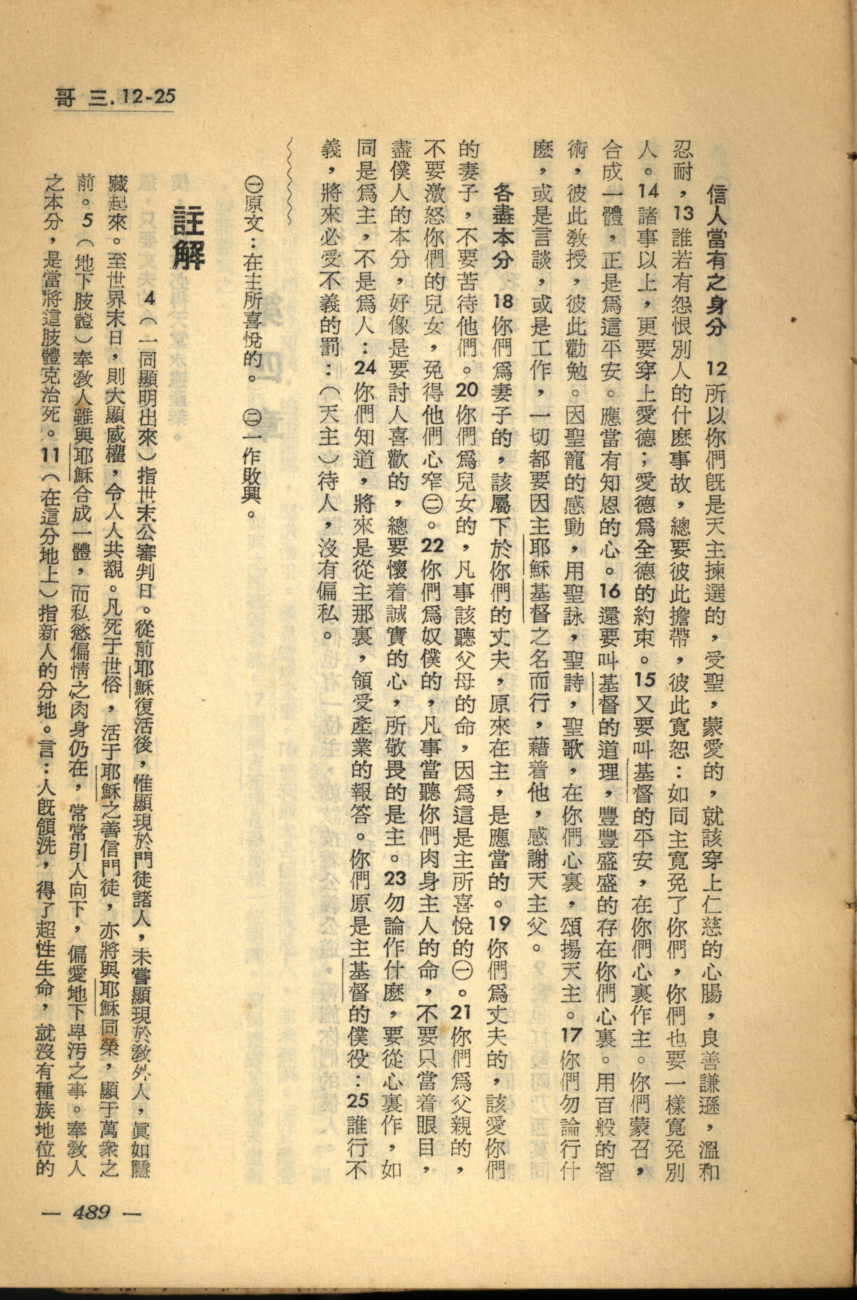 1956年新經全集 歌羅西書 3 章 12 節到 3 章 25 節