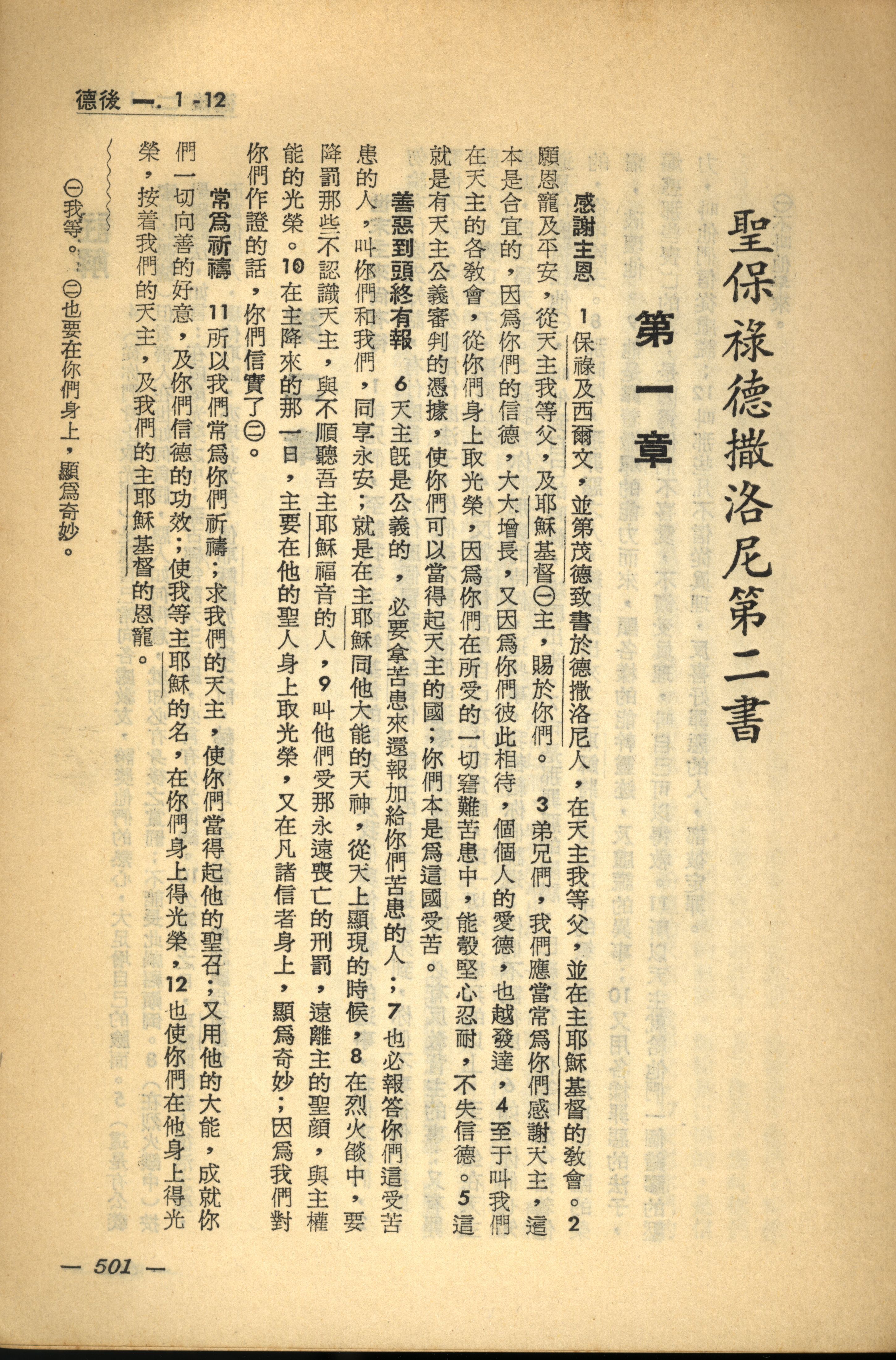 1956年新經全集 帖撒羅尼迦後書 1 章 1 節到 1 章 12 節