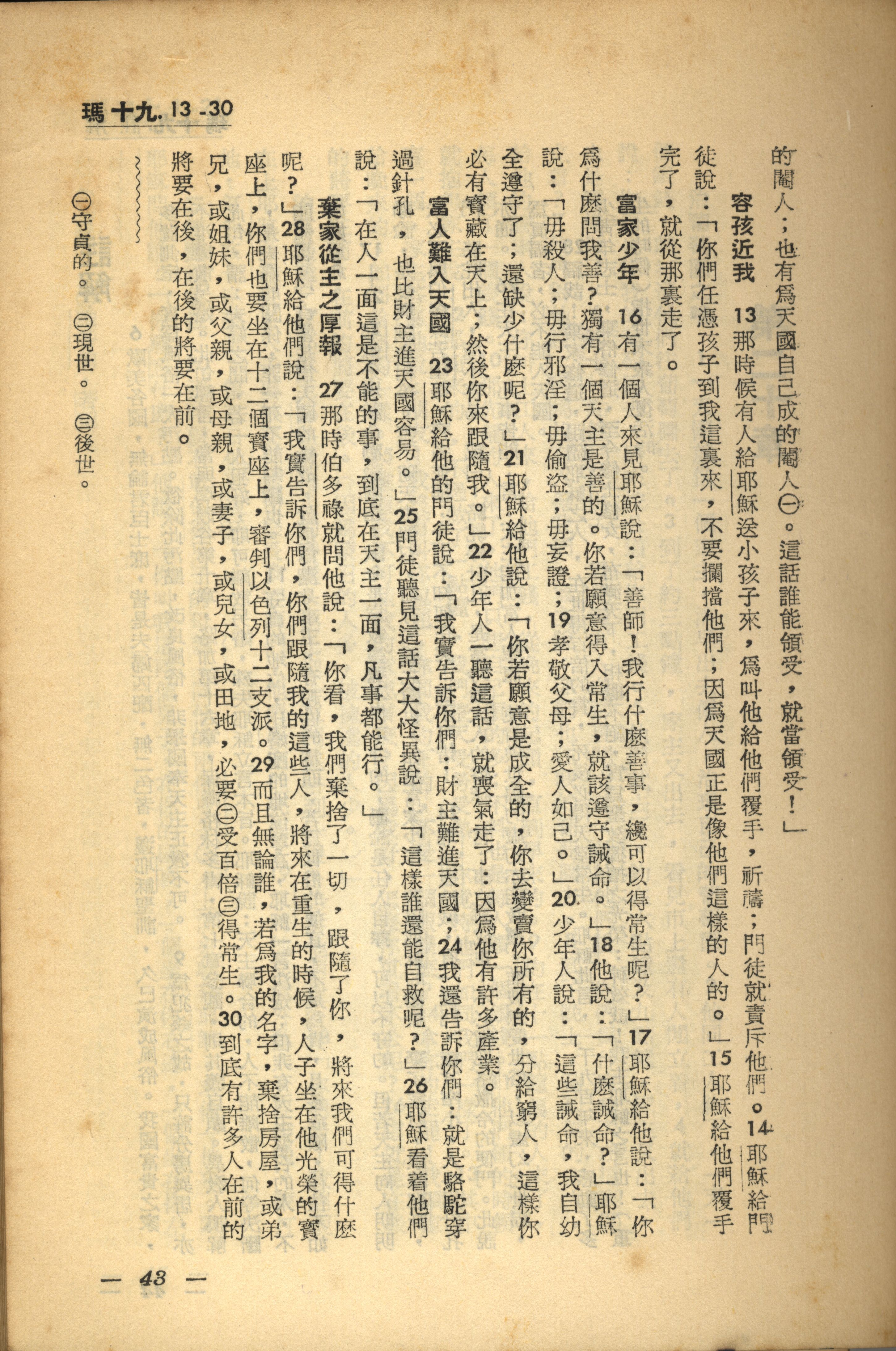 1956年新經全集 馬太福音 19 章 13 節到 19 章 30 節