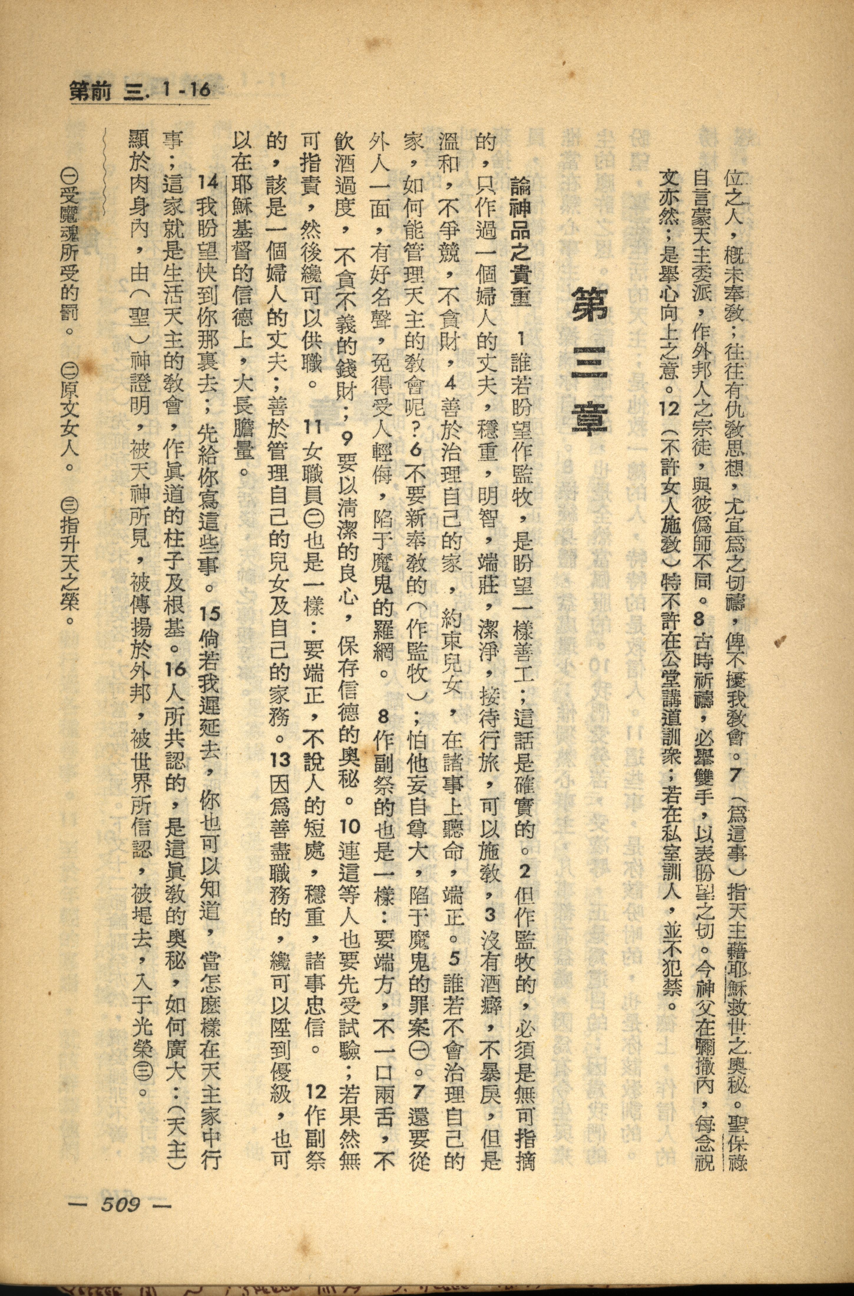 1956年新經全集 提摩太前書 3 章 1 節到 3 章 16 節