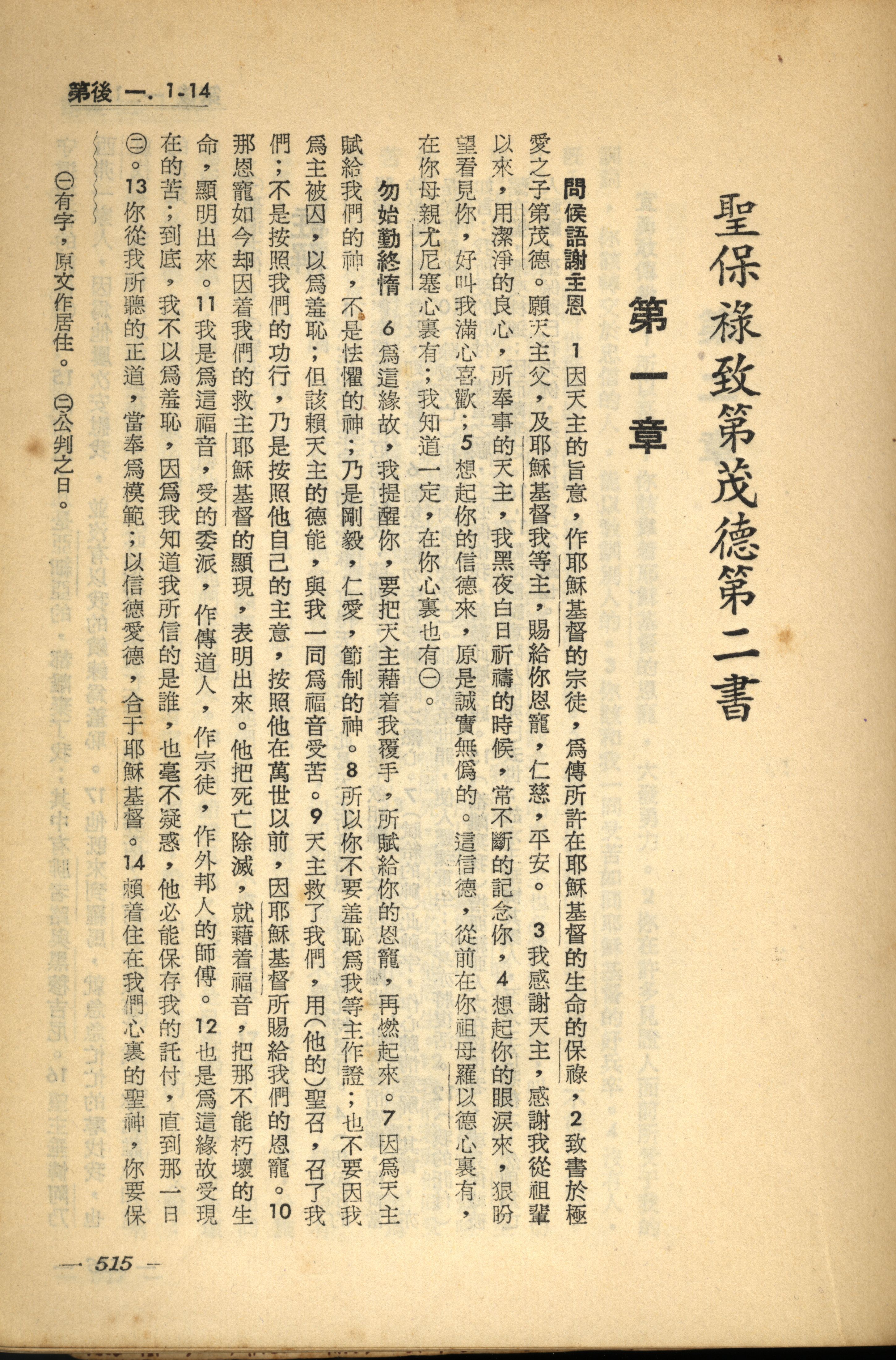 1956年新經全集 提摩太後書 1 章 1 節到 1 章 14 節