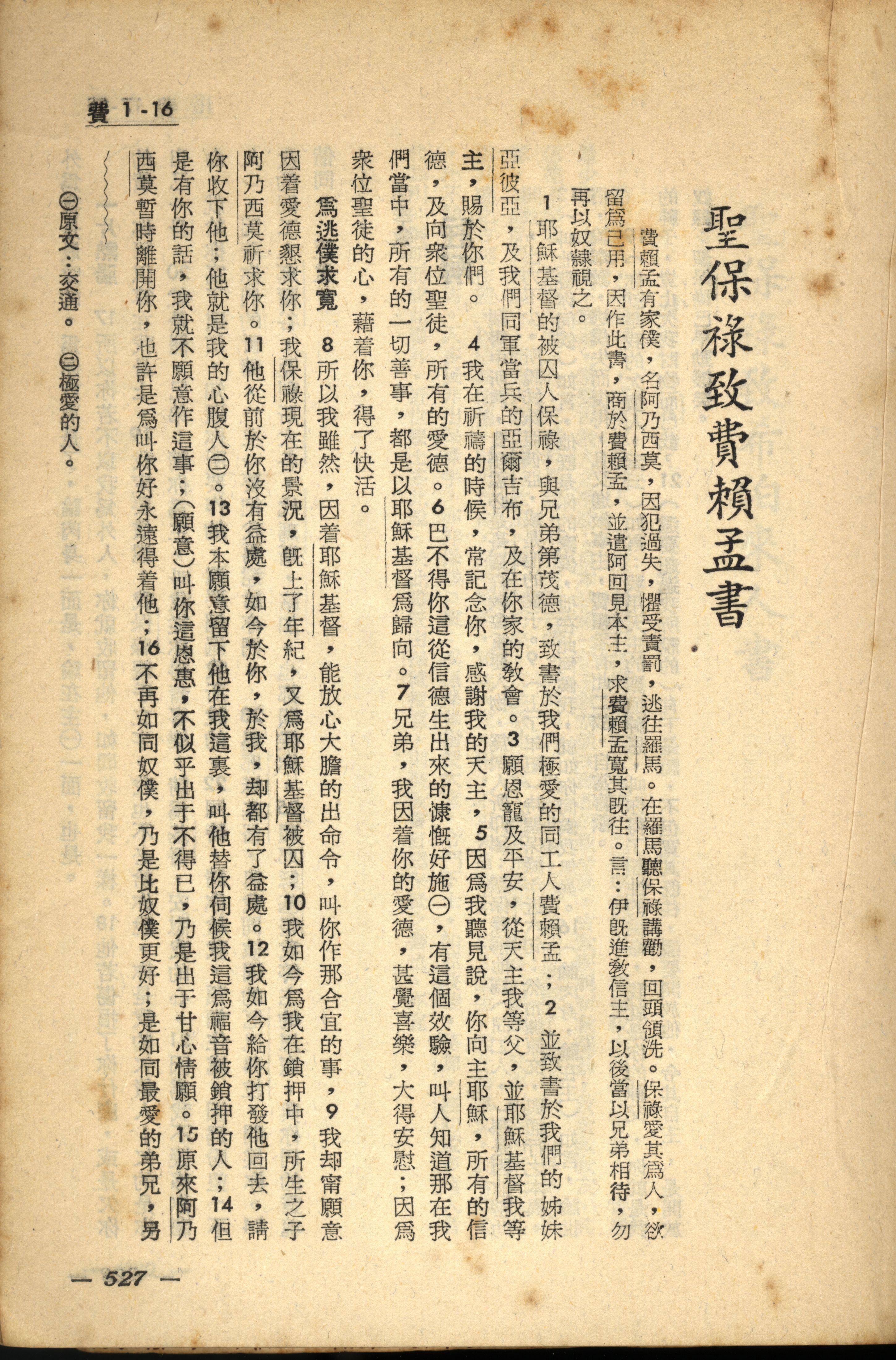 1956年新經全集 腓利門書 1 章 1 節到 1 章 16 節