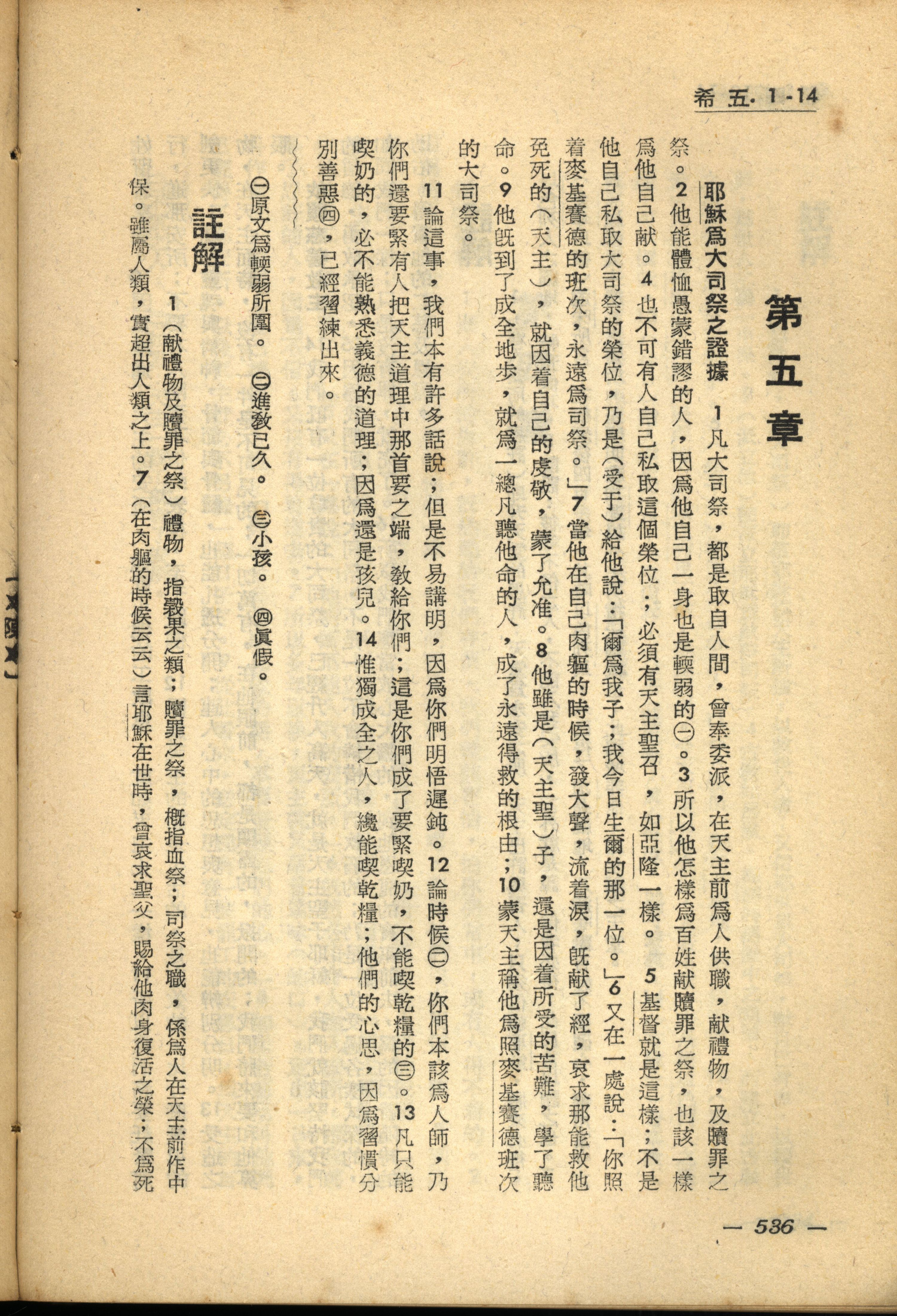 1956年新經全集 希伯來書 5 章 1 節到 5 章 14 節