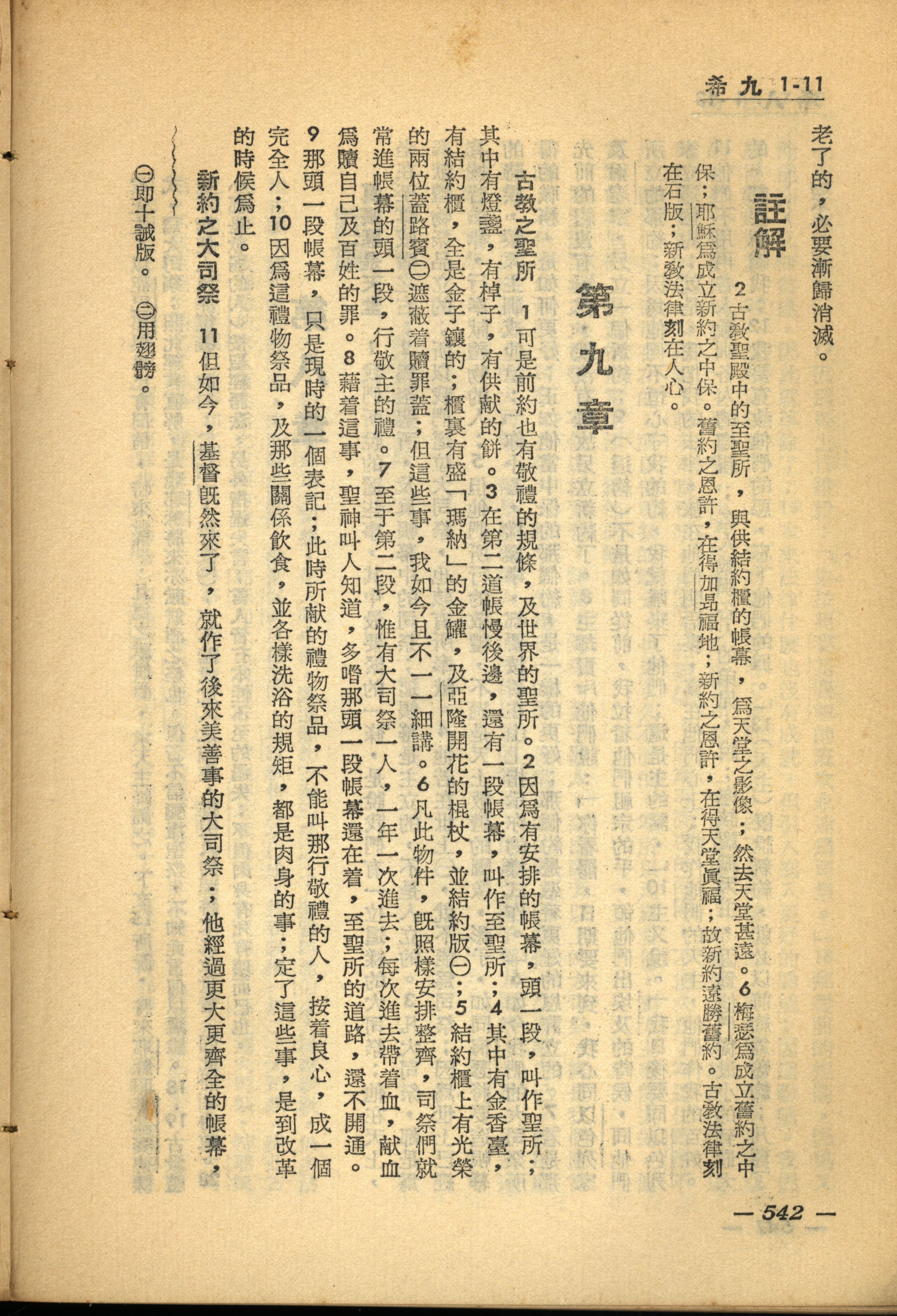 1956年新經全集 希伯來書 9 章 1 節到 9 章 11 節