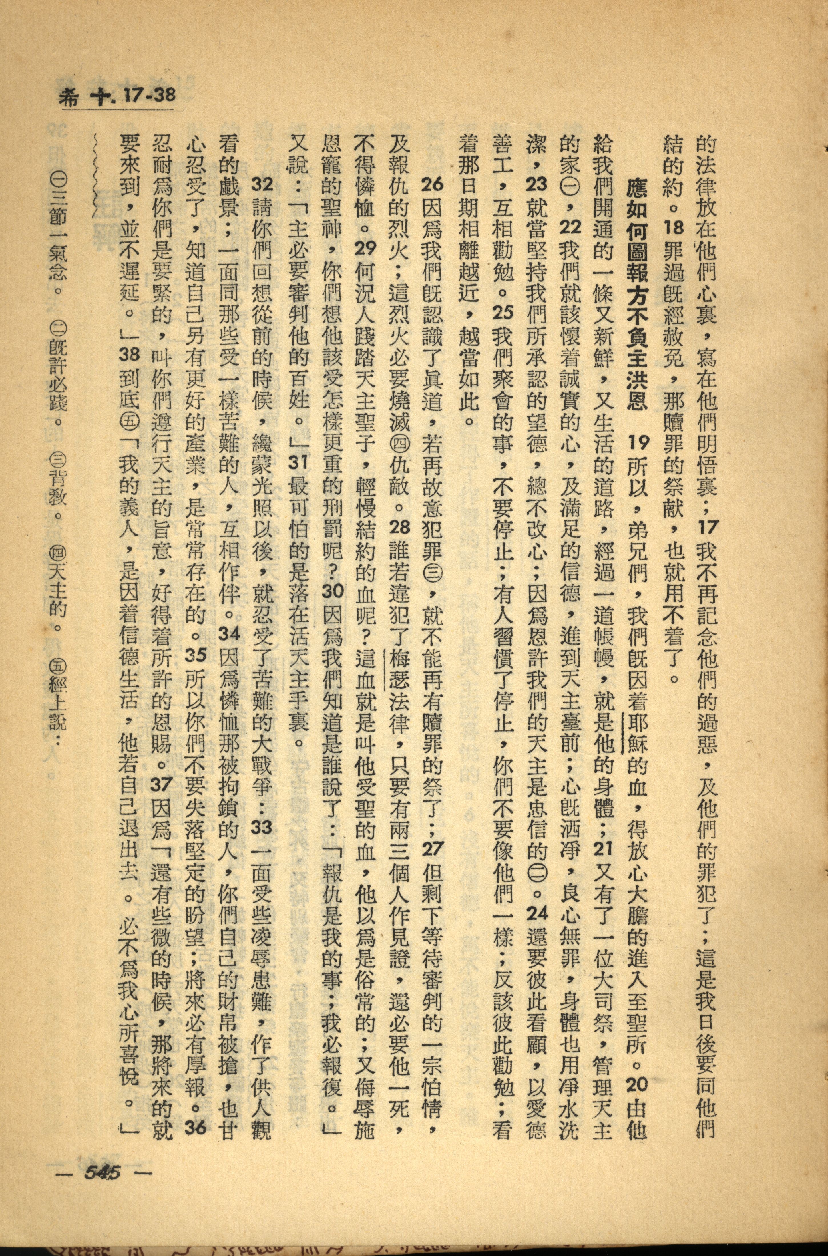 1956年新經全集 希伯來書 10 章 17 節到 10 章 38 節