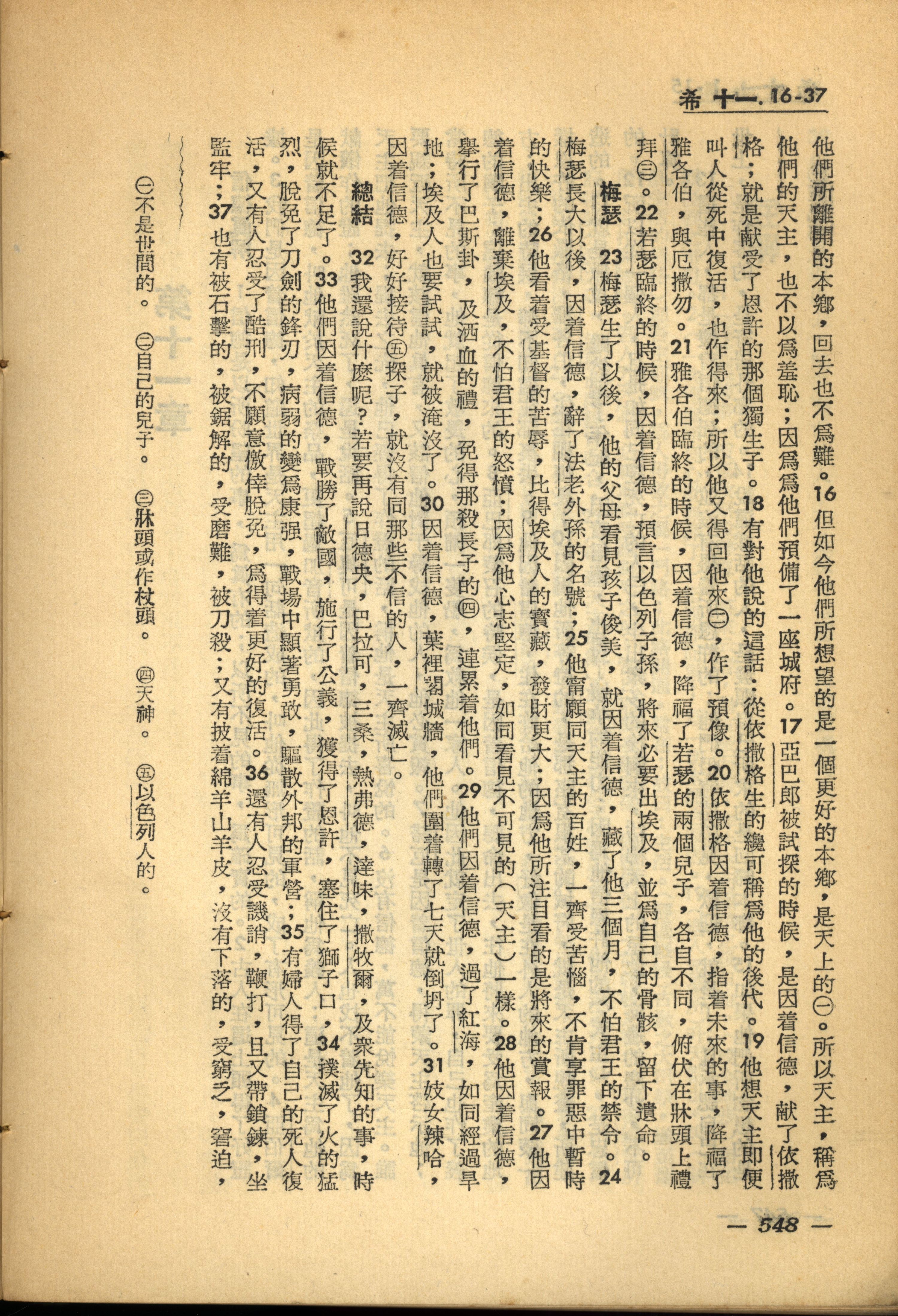 1956年新經全集 希伯來書 11 章 16 節到 11 章 37 節