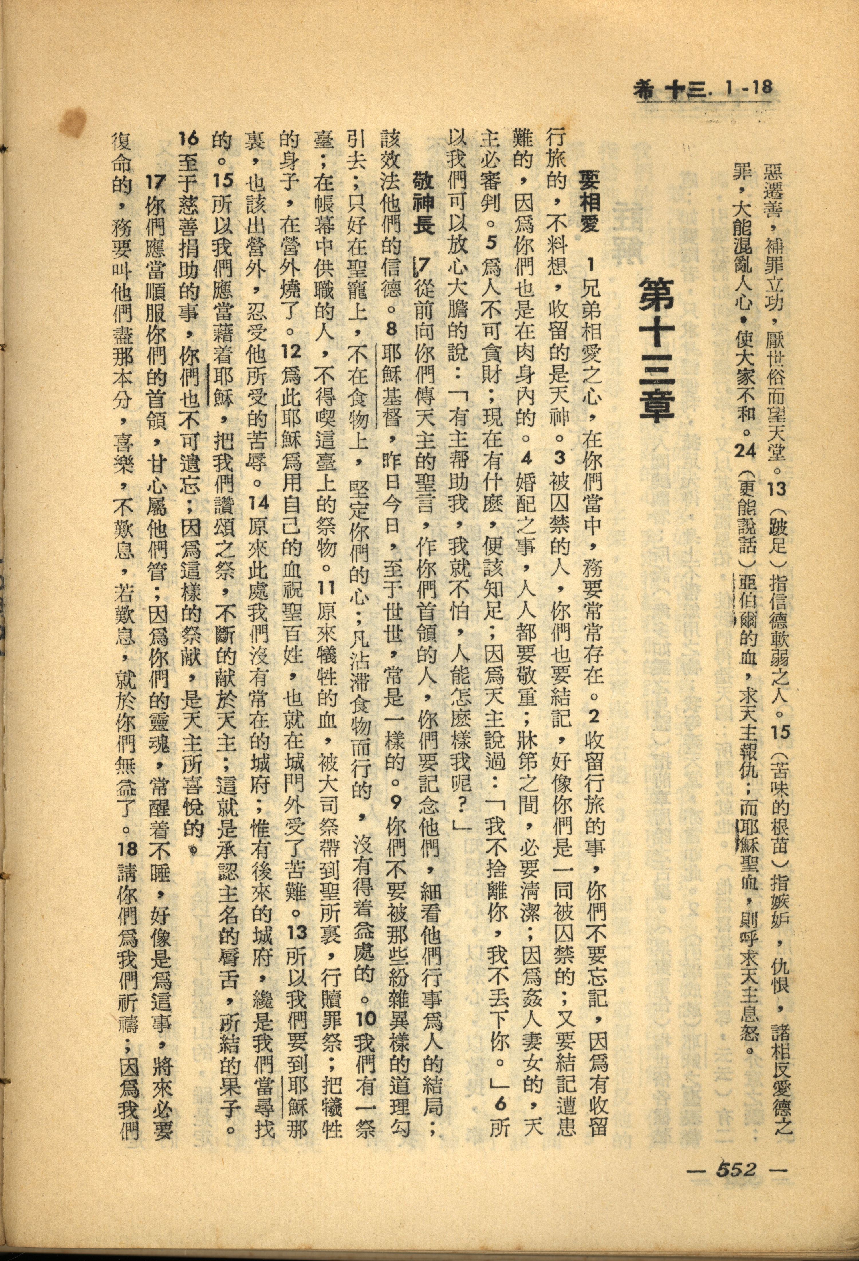 1956年新經全集 希伯來書 13 章 1 節到 13 章 18 節