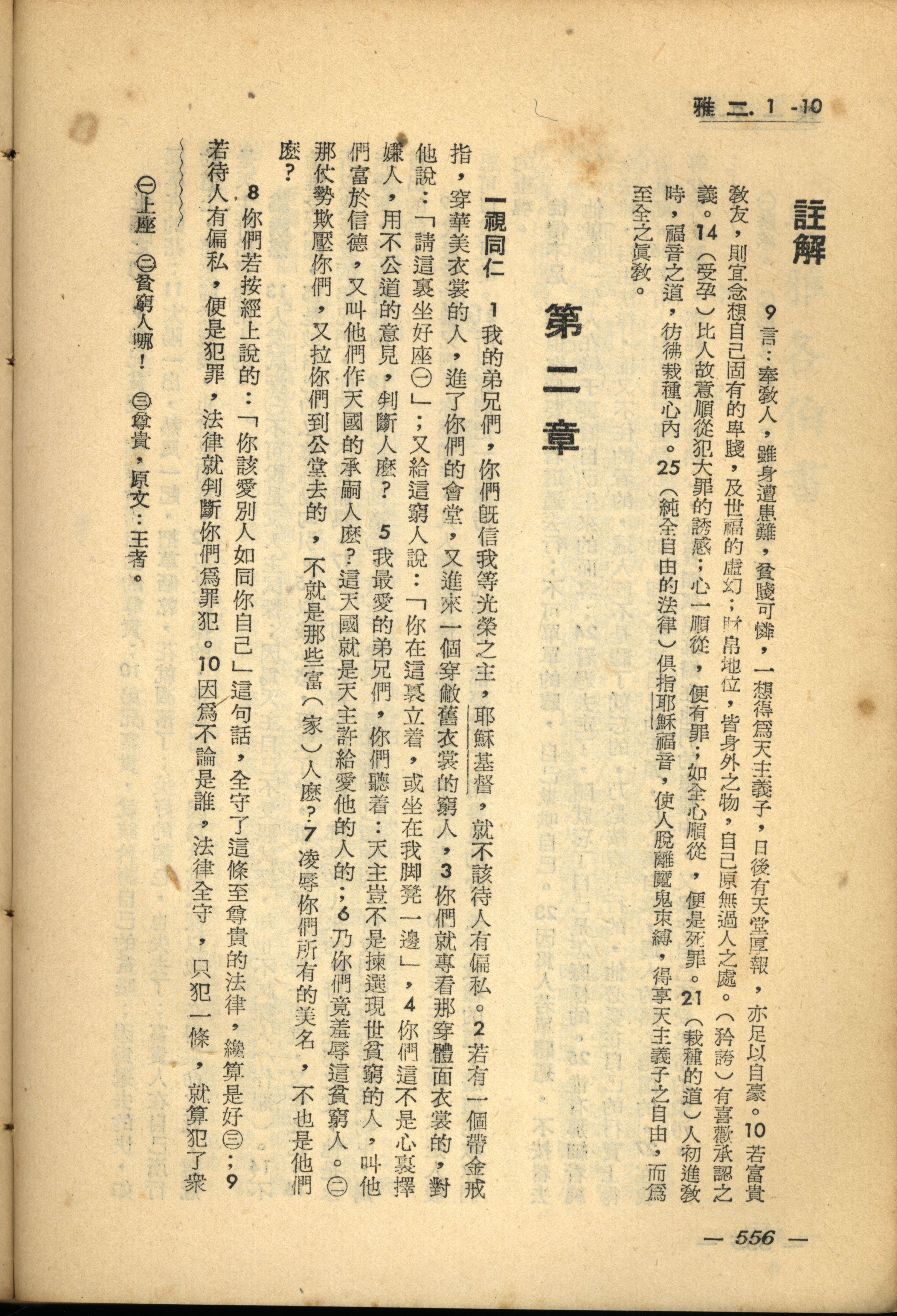 1956年新經全集 雅各書 2 章 1 節到 2 章 10 節