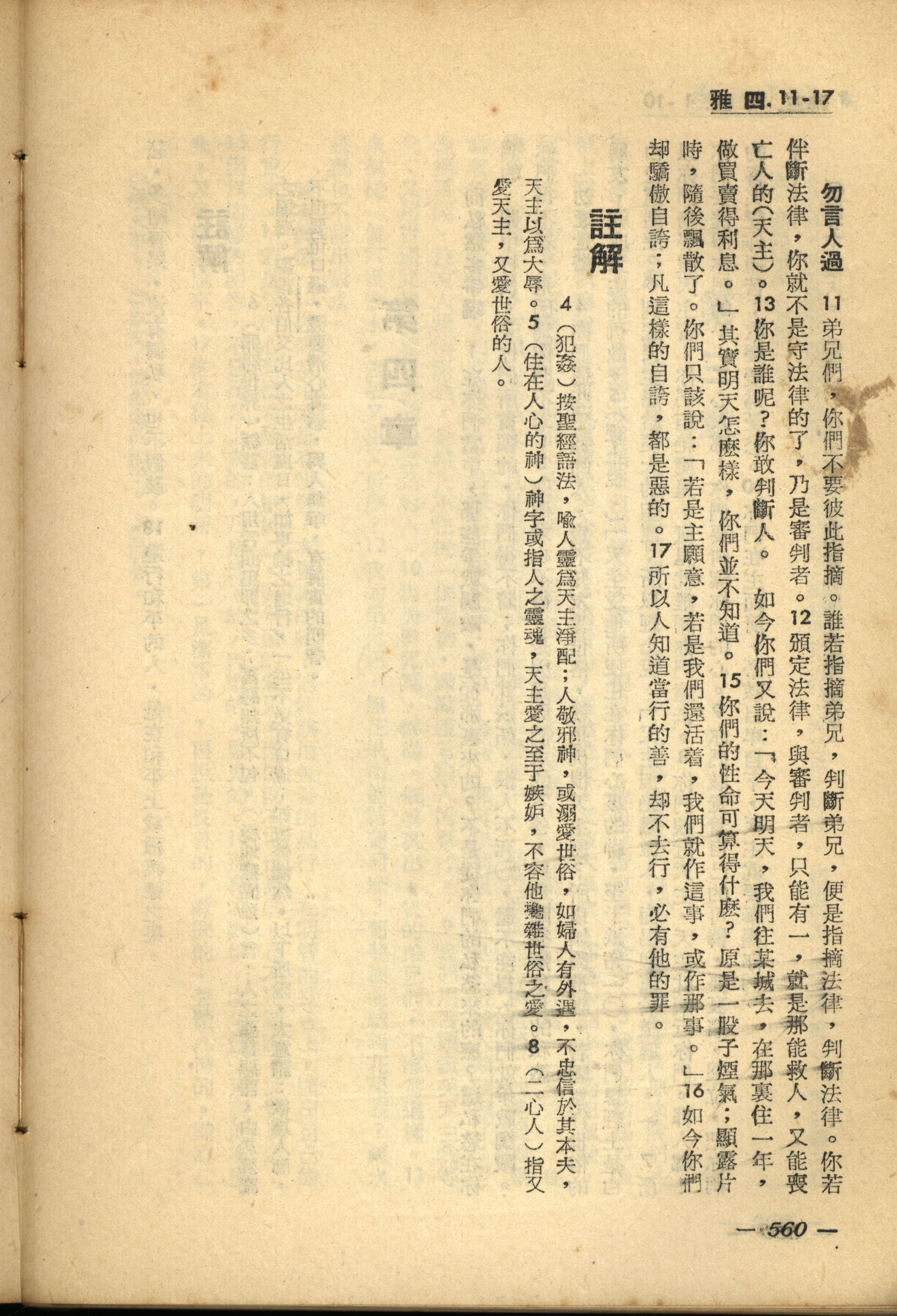 1956年新經全集 雅各書 4 章 11 節到 4 章 17 節