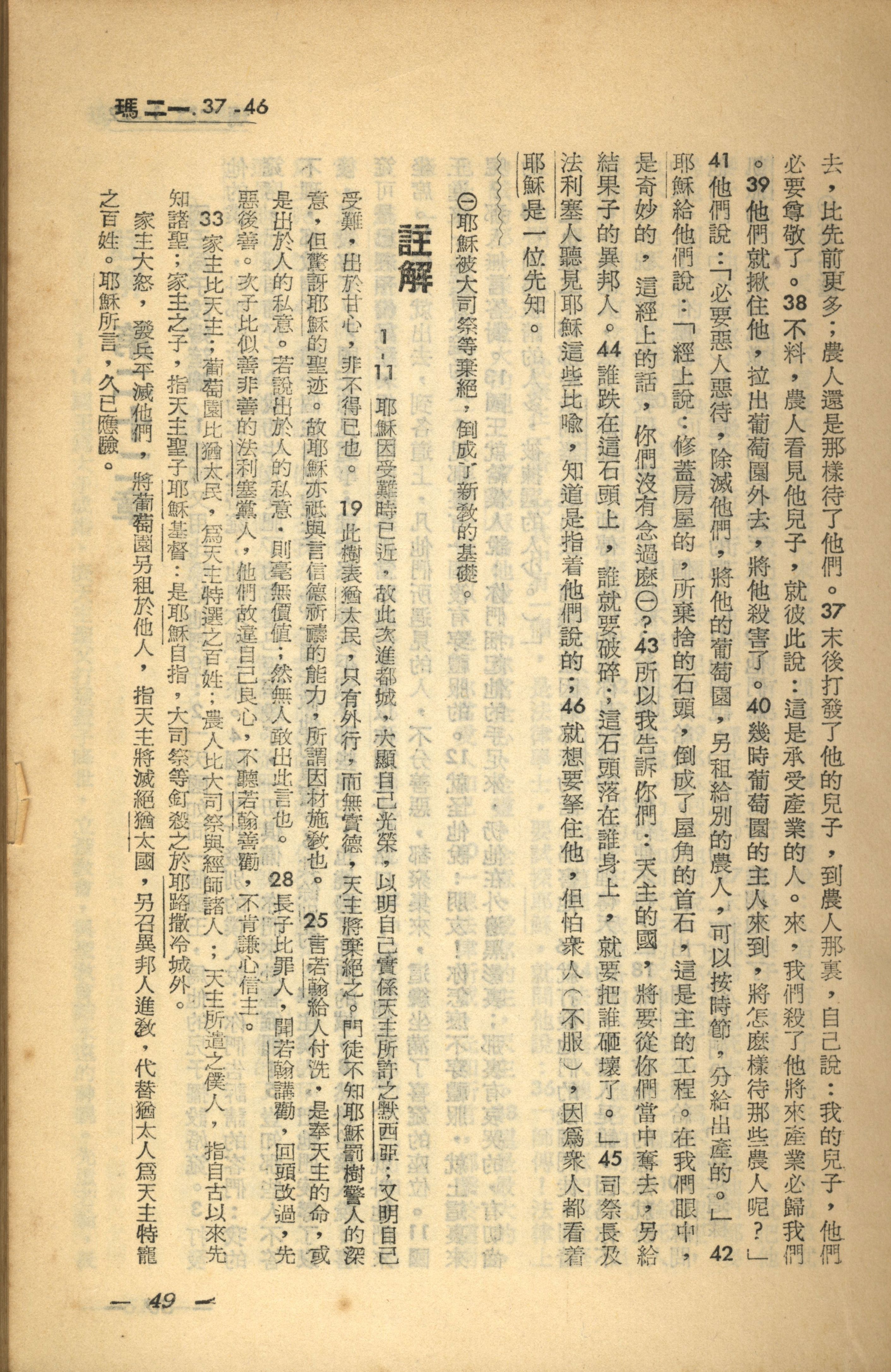 1956年新經全集 馬太福音 21 章 37 節到 21 章 46 節