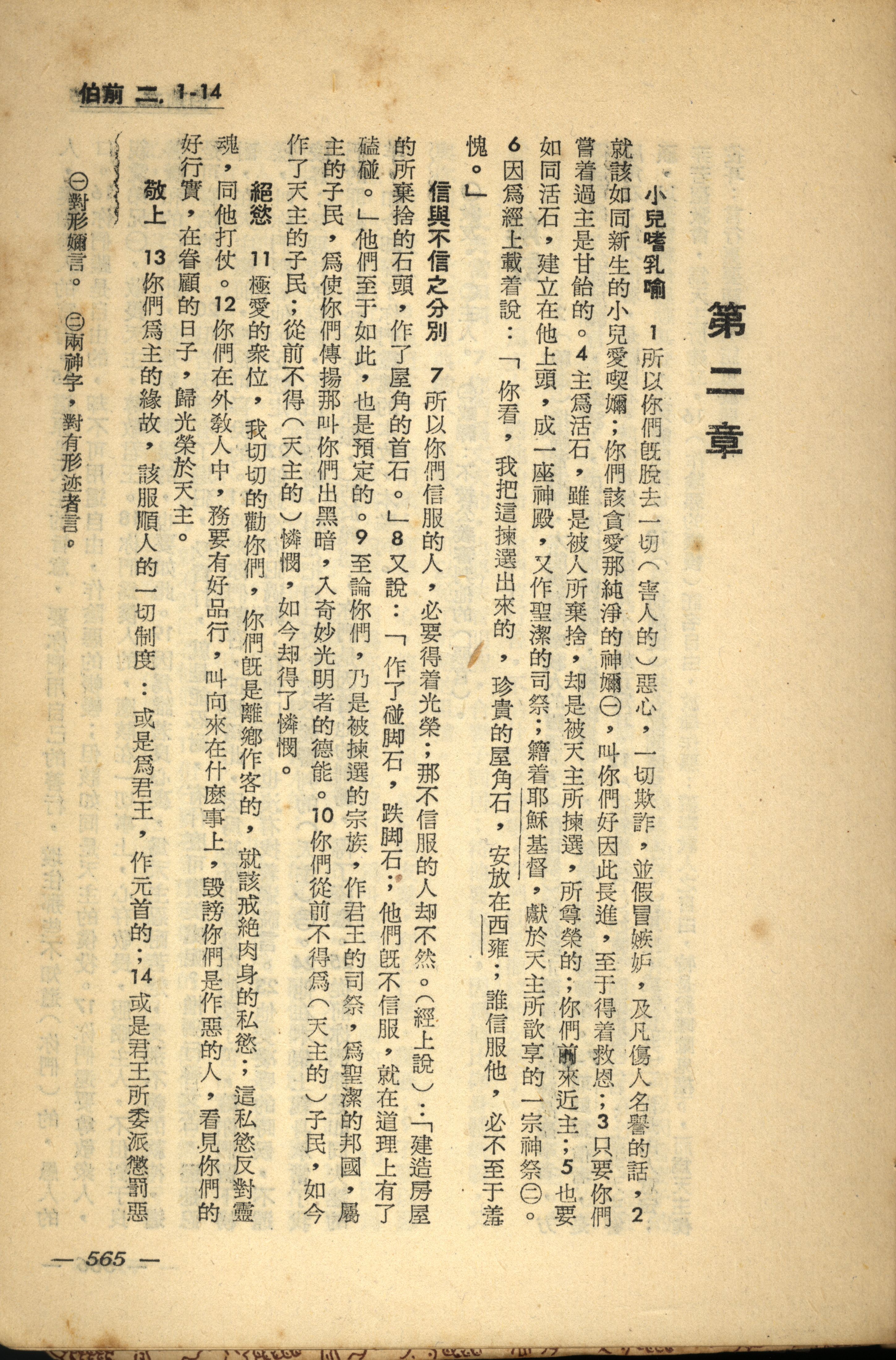 1956年新經全集 彼得前書 2 章 1 節到 2 章 14 節