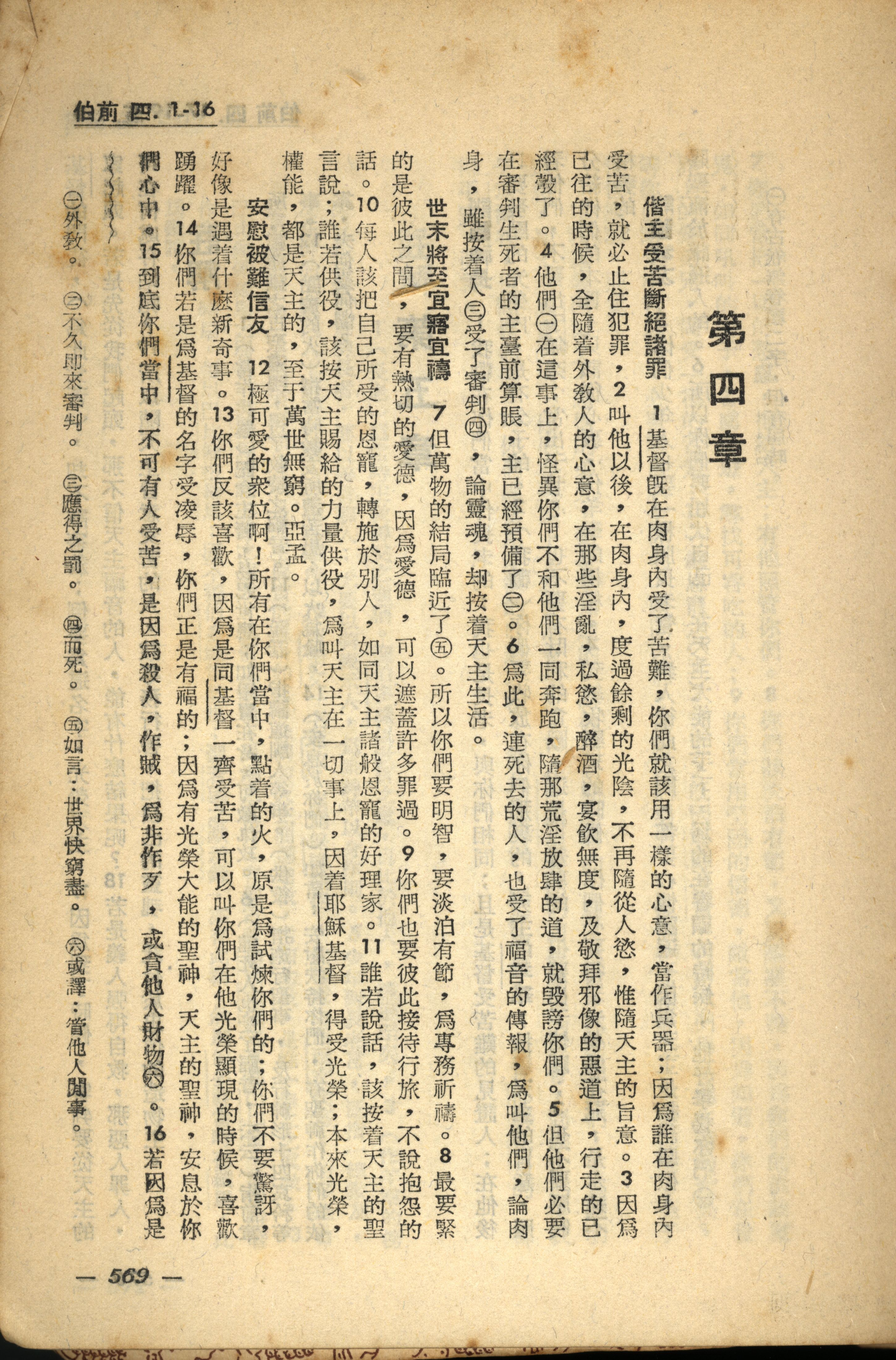 1956年新經全集 彼得前書 4 章 1 節到 4 章 16 節