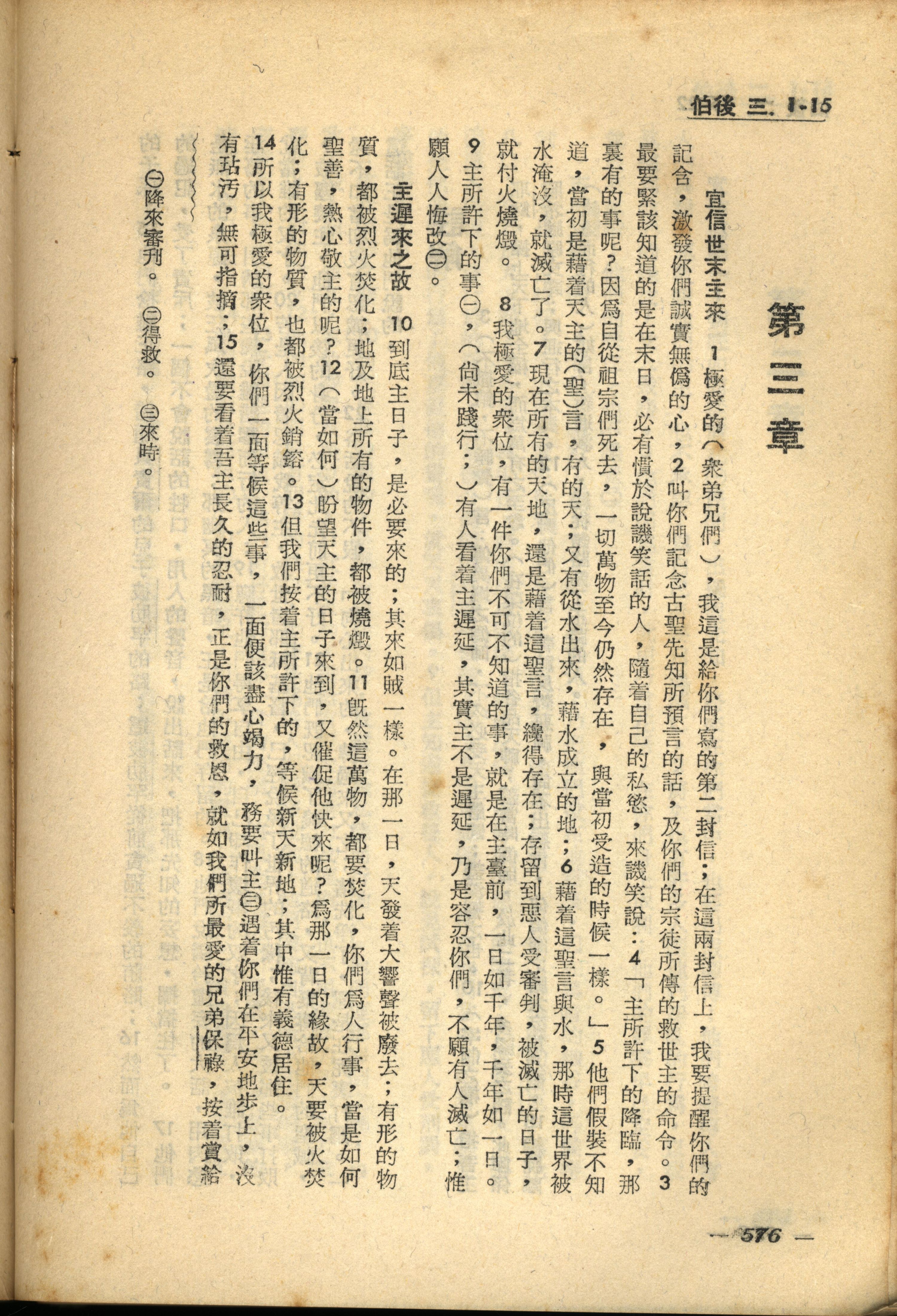 1956年新經全集 彼得後書 3 章 1 節到 3 章 15 節